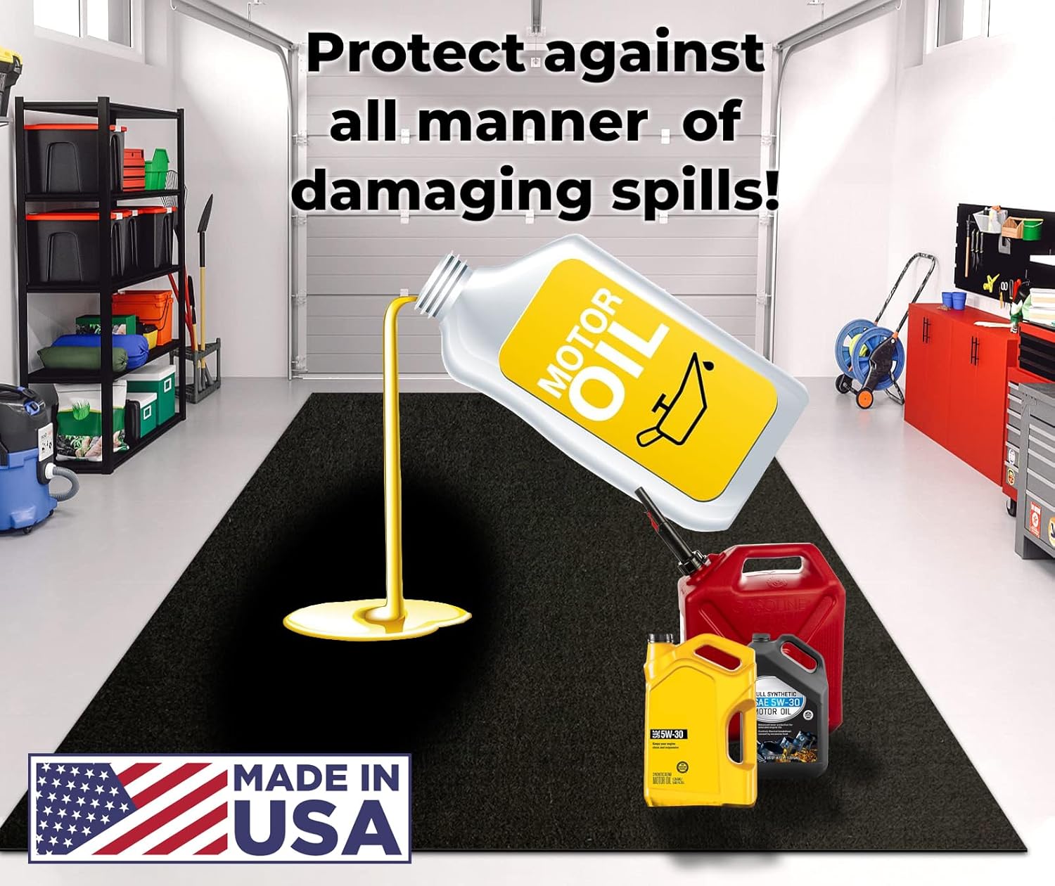 - [STOP THE MESS] - Say goodbye to stains! This garage mat for golf carts traps oil, gasoline, and grime to keep your garage or shop floor clean and mess-free.