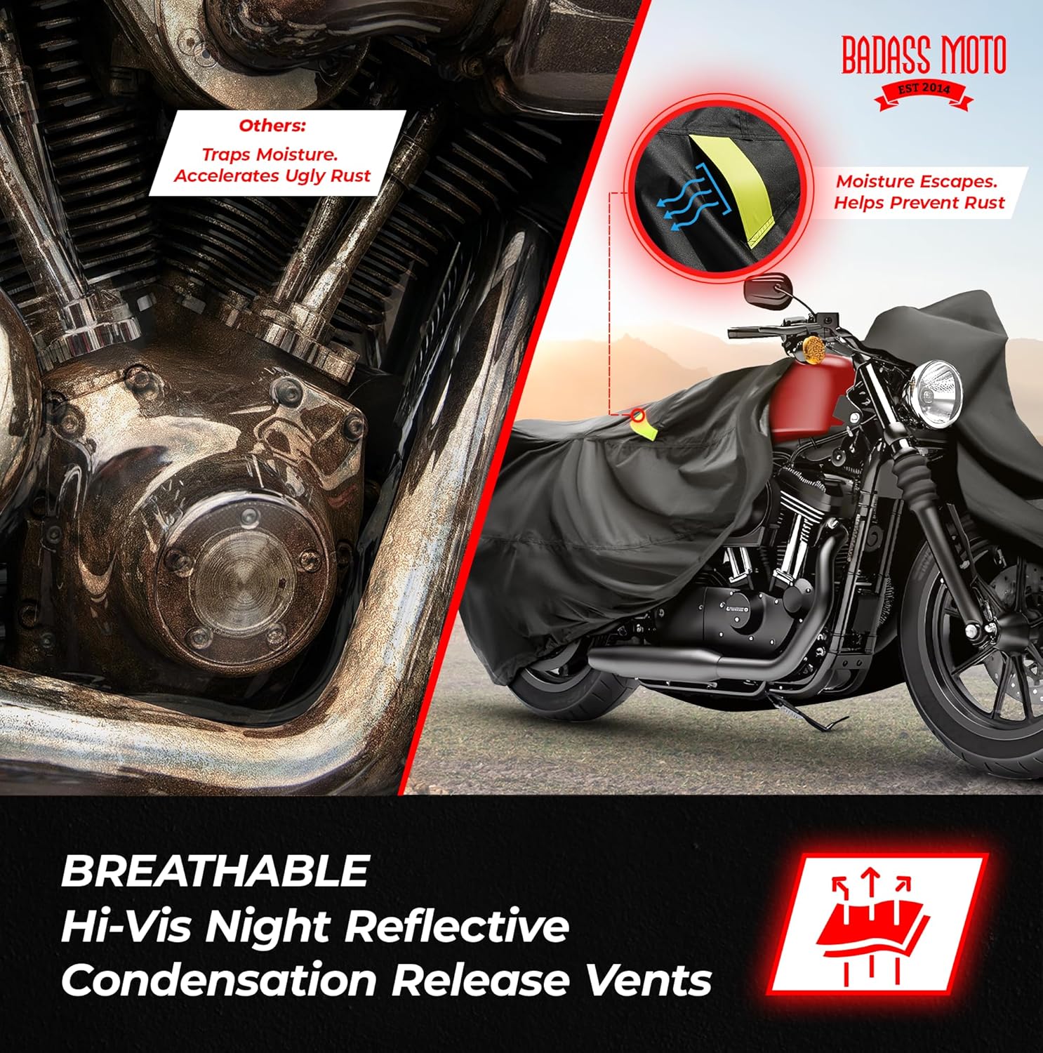 - PRESERVES YOUR MOTORCYCLE'S VALUE: Protect your investment with our badass motorcycle cover, which prevents weather-related wear and tear. By keeping your bike clean and dry, you’ll reduce the need for frequent maintenance and enjoy a like-new ride every time you hit the road with this motorcycle cover heavy duty, all weather motorcycle cover outdoor. Motorcycle covers for harleys.