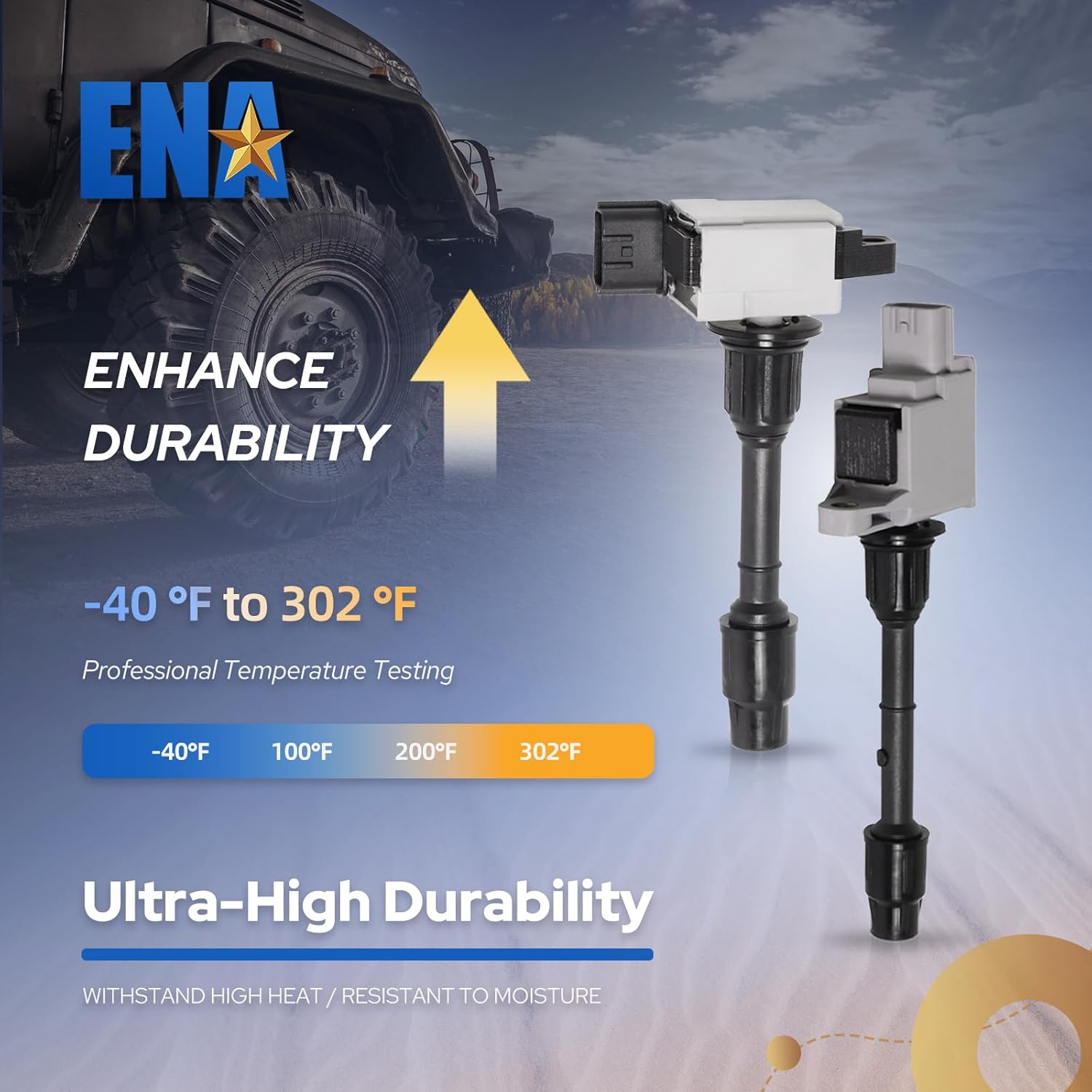 - Specifications: Ignition coil Cylinders 1: 1. Terminal Quantity: 3; 2. Mount Type: Bolt On; 3. Voltage: 12V. Ignition coil Cylinders 2-6: 1. Terminal Quantity: 3; 2. Voltage: 12V. ENA ignition coil packs are engineered to ensure reliable ignition and consistent spark output