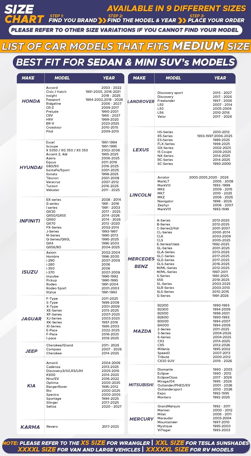 - Choose the Right Fit: Available in multiple sizes, EcoNour’s shades for windows are tailored to fit various vehicle models. Refer to the size chart to pick the best car window shade for maximum protection.