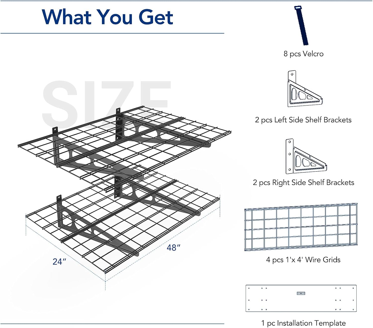FLEXIMOUNTS 2-Pack 2x4ft 24-inch-by-48-inch Wall Shelf Garage Storage Rack Wall Mounted Floating Shelves, Black