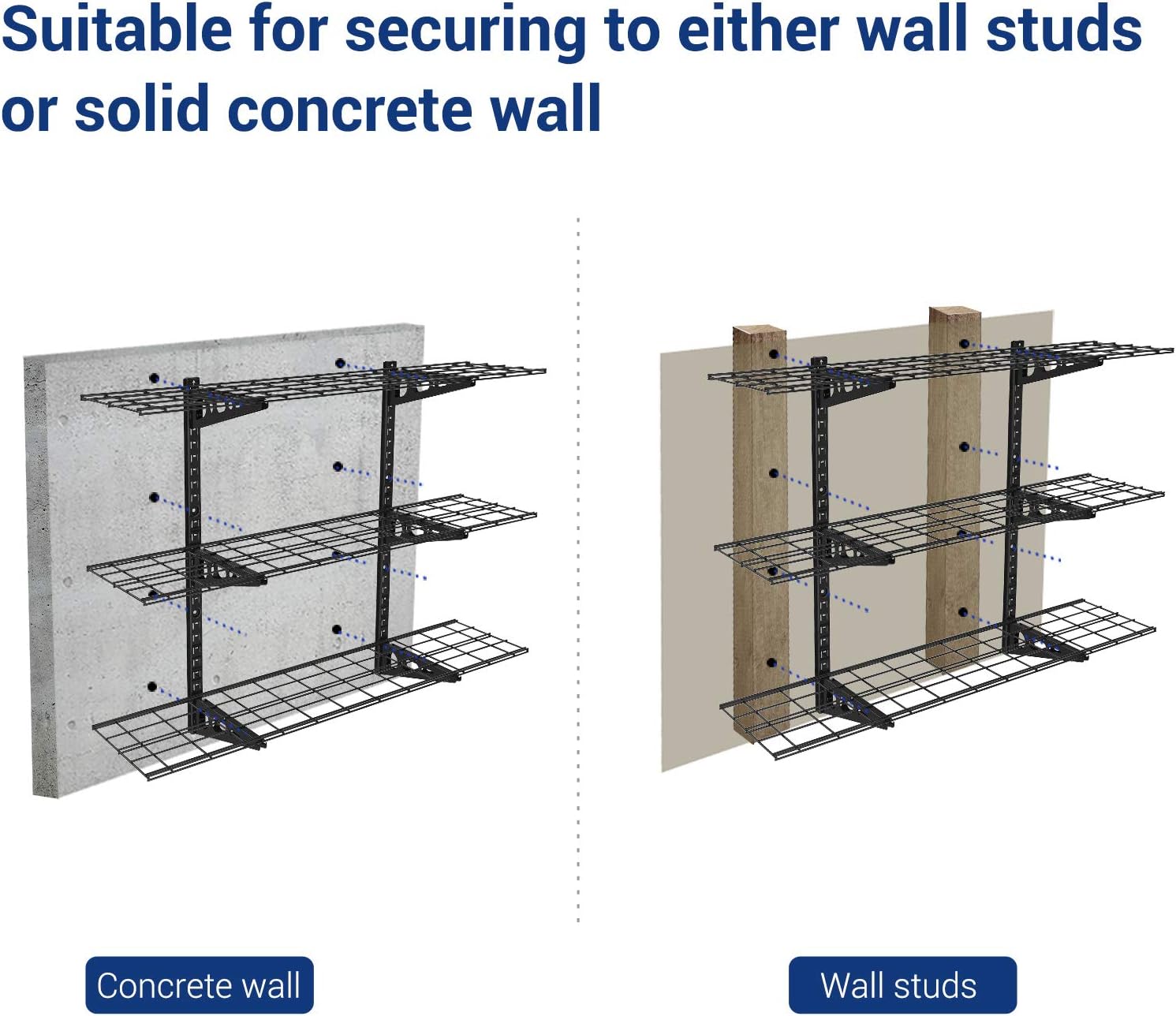 - 900 lbs Tested, 450 lbs Rated Weight Capacity: Our wall storage rack undergoes rigorous double load testing (900 lbs) to ensure unmatched safety and durability, supporting up to 450lbs total / 150lbs per tier for your tools and equipment.