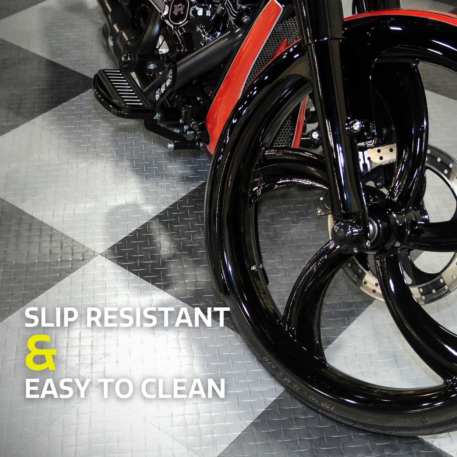 - SLIP RESISTANT AND EASY TO CLEAN: Unlike epoxy or other floor treatments, the diamond plate design provides great traction with little or no maintenance. The sturdy, durable surfaces wonβt stain and make clean-up a breeze. Car oil, dirt, dust, or other messes are no problem with a mop or shop vac.