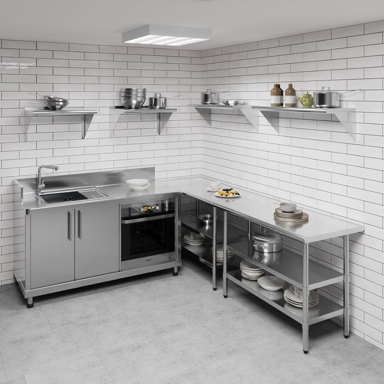 - Its professional, modern and sleek design makes this metal floating shelf perfect for use in any residential or commercial kitchen, food truck, garage, closet, laundry room, utility and equipment room, lab, appliance shelf for toaster and microwave, etc.