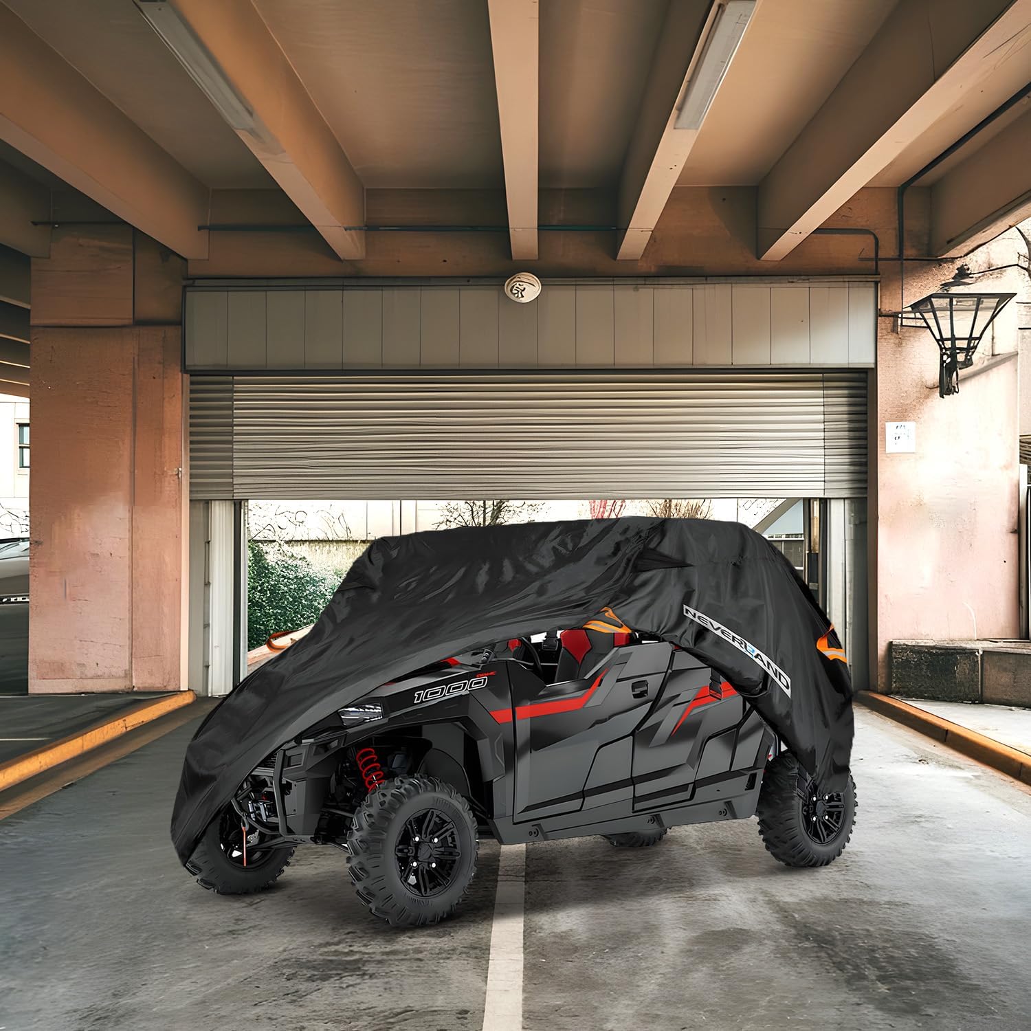 - [Keep Your UTV Stay in Place]: Front, middle and rear bandage flexible for you adjusting straps and buckles to tight vehicle fit, preventing this utv cover is blown off by strong wind or other extreme weather