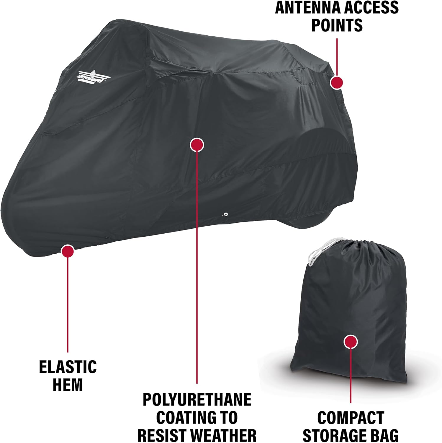 - Intelligent Accessory Protection - Our cover isn't just for your motorcycle; it includes an expandable windshield pocket for specific models and antenna flaps. Plus, the built-in windshield liner adds an extra layer of care