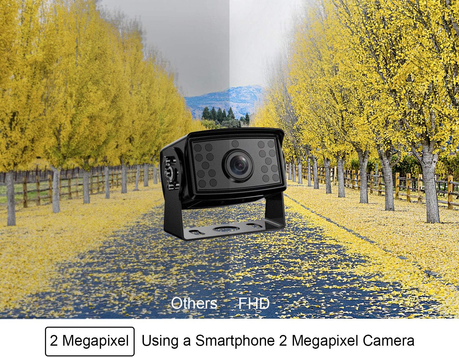 - 2 Million Pixel & IP69 waterproof Cameras: Without infrared lights, you don’t need to worry that the cameras switch back and forth between night vision and normal mode while driving in the dark. With only a little light, the cameras will show you great colored images even at night, making your driving more comfortable. In addition, waterproof cameras will serve you longer.
