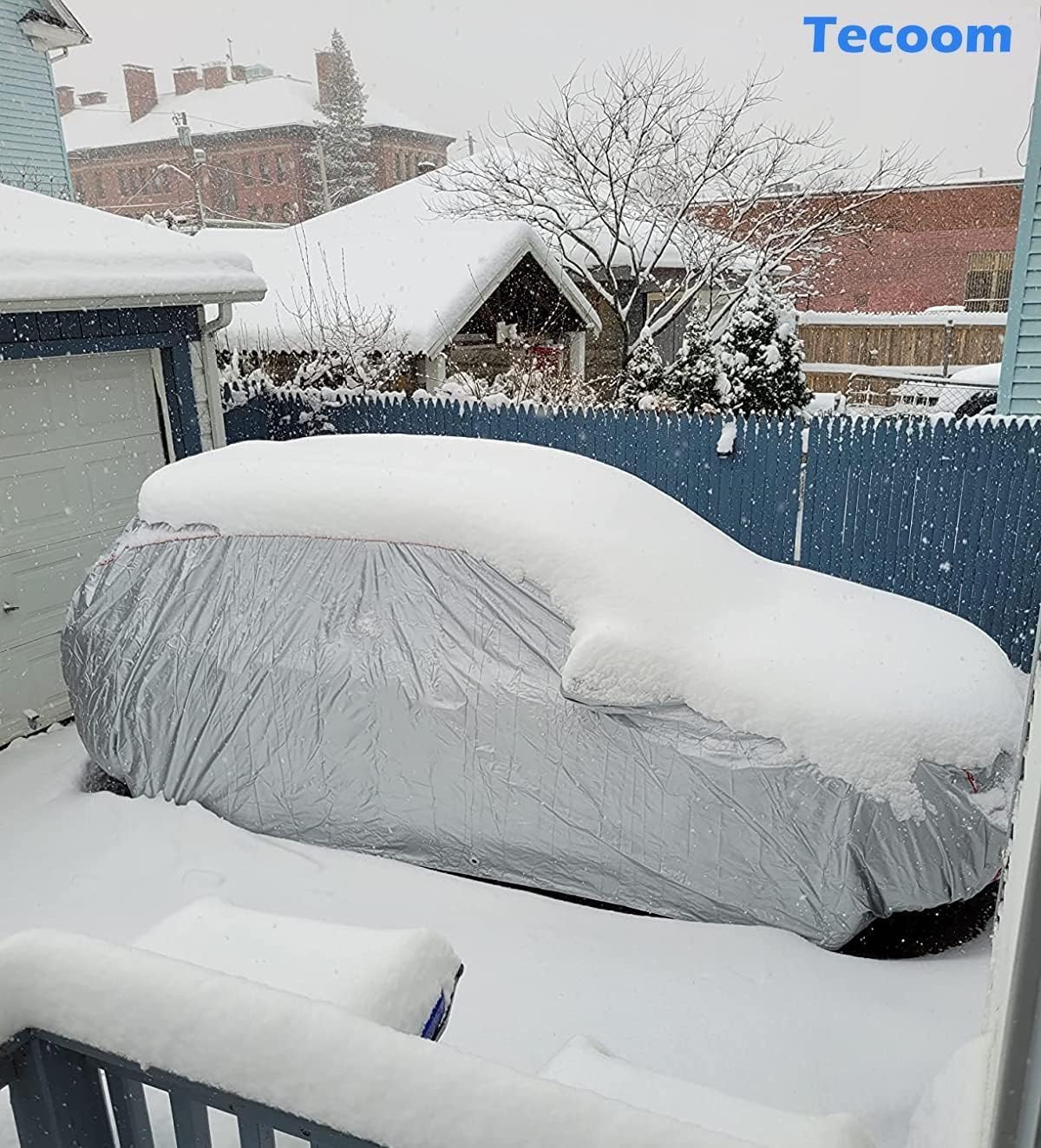 - ăAll Weather ProtectionăTecoom car covers is perfect for indoor and outdoor use, no matter the sun or the cold weather, protects your car safe from UV rays, snow, rain, frost, sand,dust, leaves, branches, birds dropping.
