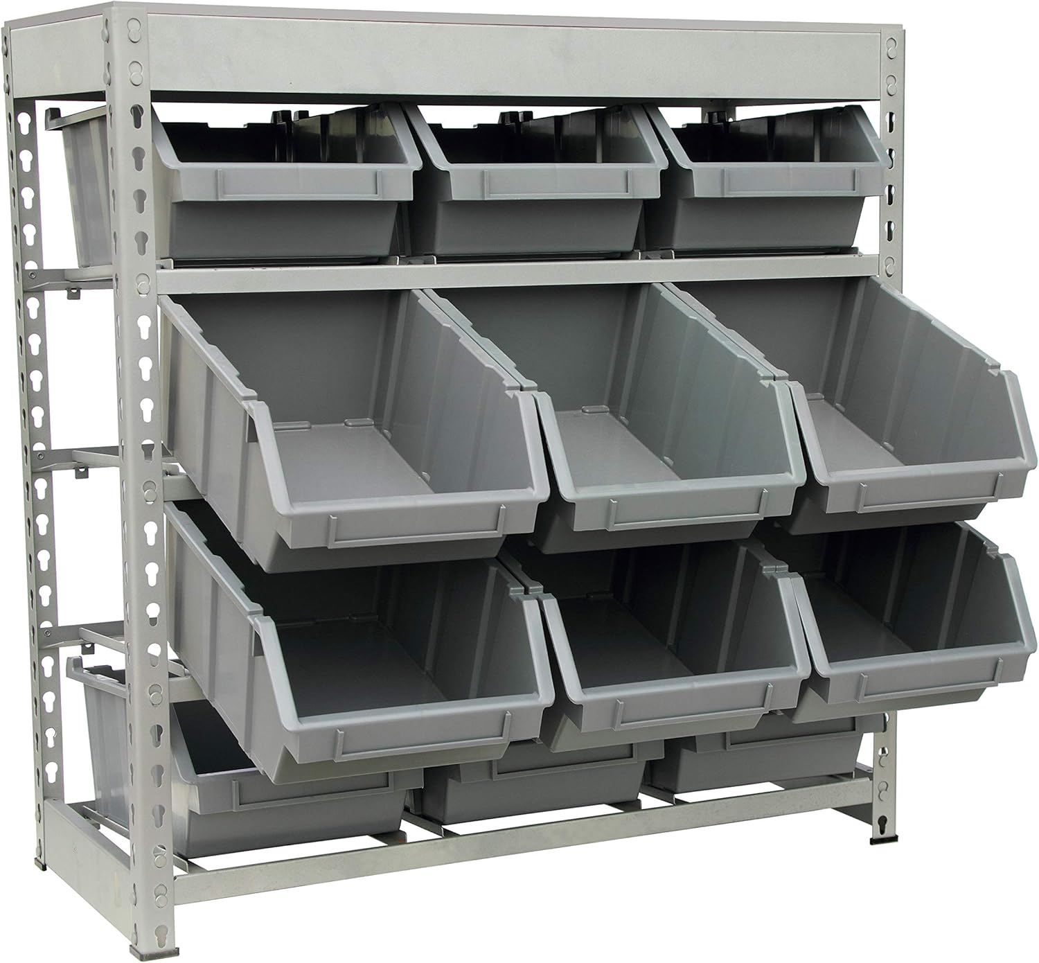 King's Rack Bin Rack Boltless Steel Storage System Organizer w/ 12 Plastic Bins in 4 Tiers