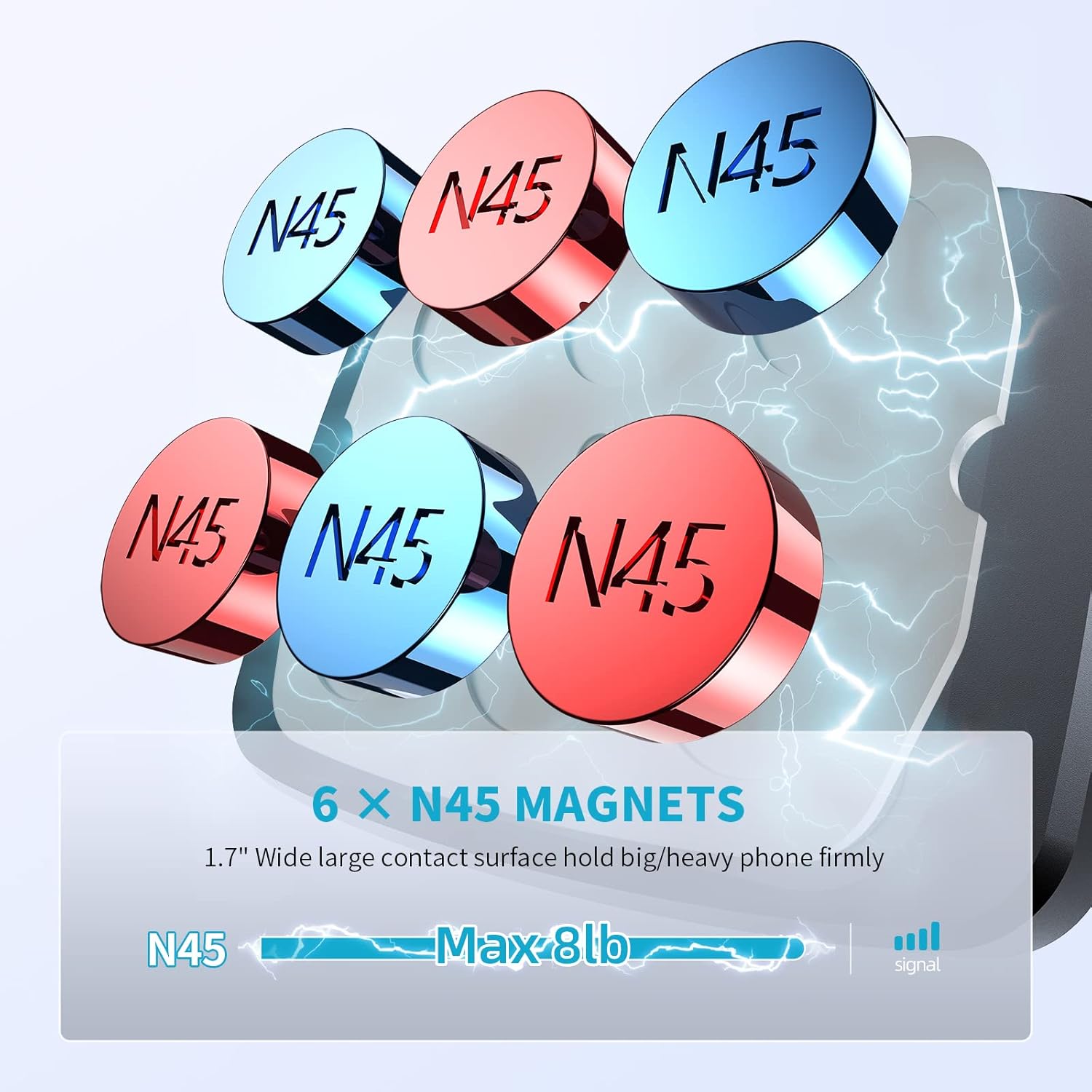 - Super Strong Magnetic: With 6 pcs N45 built-in magnets, the truck phone holder mount has strong magnetic to prevent the phone from falling even on rough roads. It firmly holds your phone even with a thick case, so you can touch it easily instead of lift it when you need to navigate or message. (For plus-size phones, we recommend placing the magnet plate on the case for best-magnetized connection)