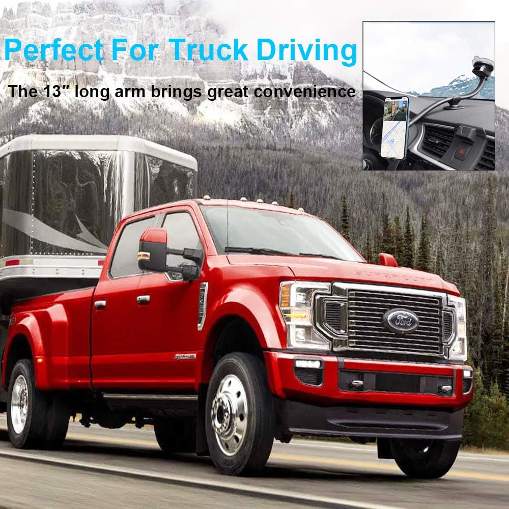 APPS2Car Magnetic Phone Holder Mount with 13-inch Flexible Long Arm & 6 Strong Magnets, Anti-Shake Holder for Truck Windshield Dashboard, Suction Car Mount for All Phones