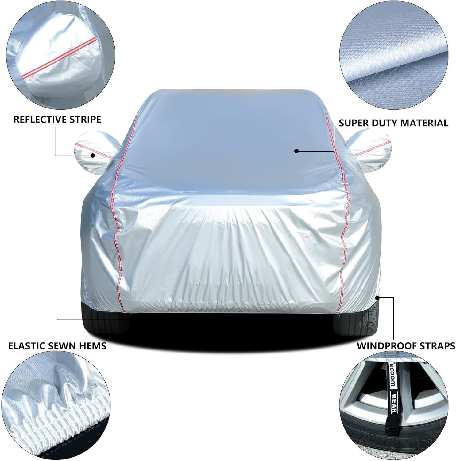 - 【All Weather Protection】Tecoom car covers is perfect for indoor and outdoor use, no matter the sun or the cold weather, protects your car safe from UV rays, snow, rain, frost, sand,dust, leaves, branches, birds dropping.