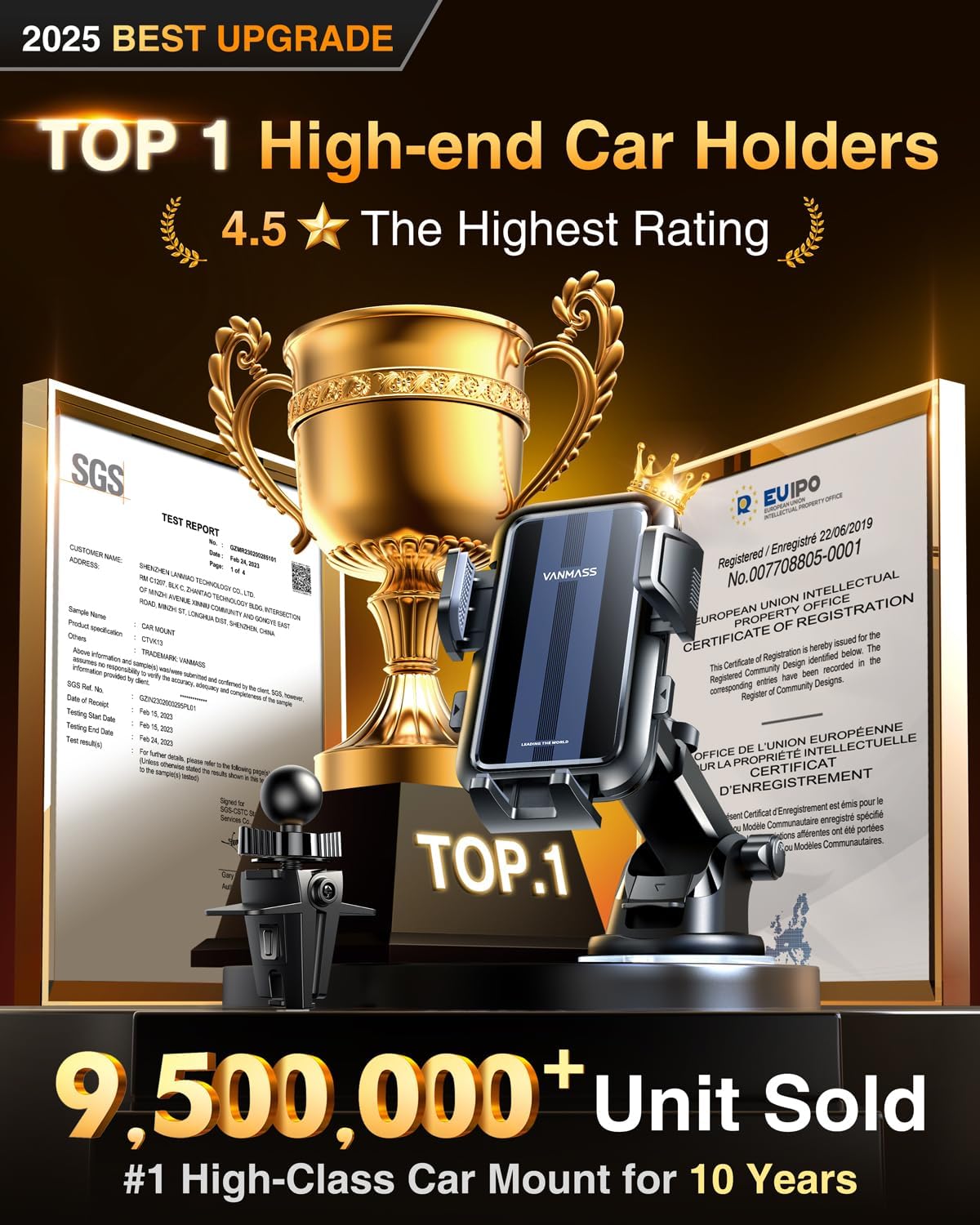 - [2025 Best Upgrade Car Phone Holder, Brandnew Flagship Version] 2025 VANMASS car phone holder is certified by all authorities (International Military-Grade Shockproof Cert No.GZMR230200285101, CP65,REACH,RoHS, UKCA), based on Unique Grandmaster Design (Patent No.CN 306455325 S), TOP Durable & Healthy Materials from 20,900 materials & Industry-Leading Safety Tests (Monthly 5,000+ open/close test; 100,000+km rugged road tests)