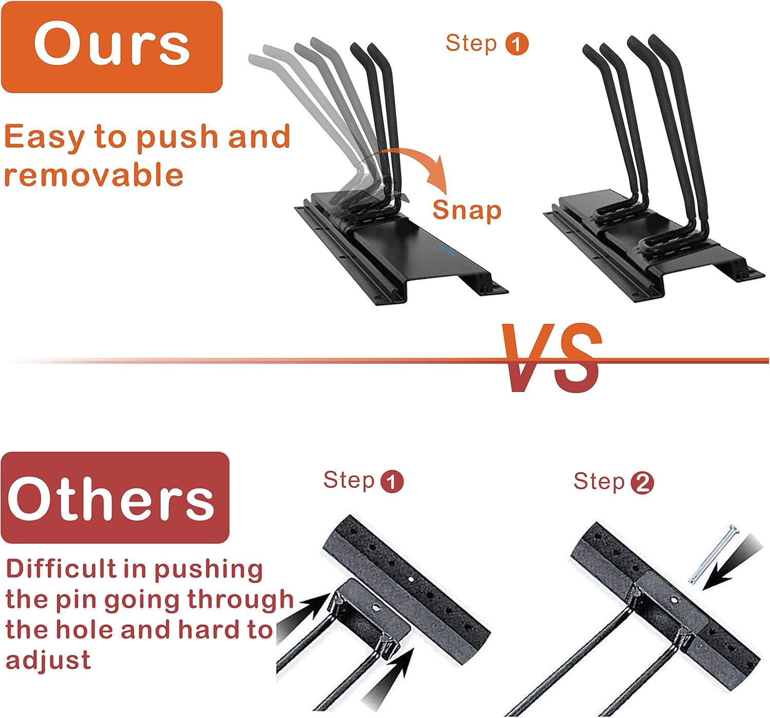 - 6 Pcs Removable Rubber Wrapped Hooks: The garden tool organizer have 6 pcs hooks. Each hook is 8.4inch, which support a variety of heavy items. They are wrapped with rubber that can protect your tools from slid and damage. These sturdy brackets glide effortlessly onto the rack & easily adjust.
