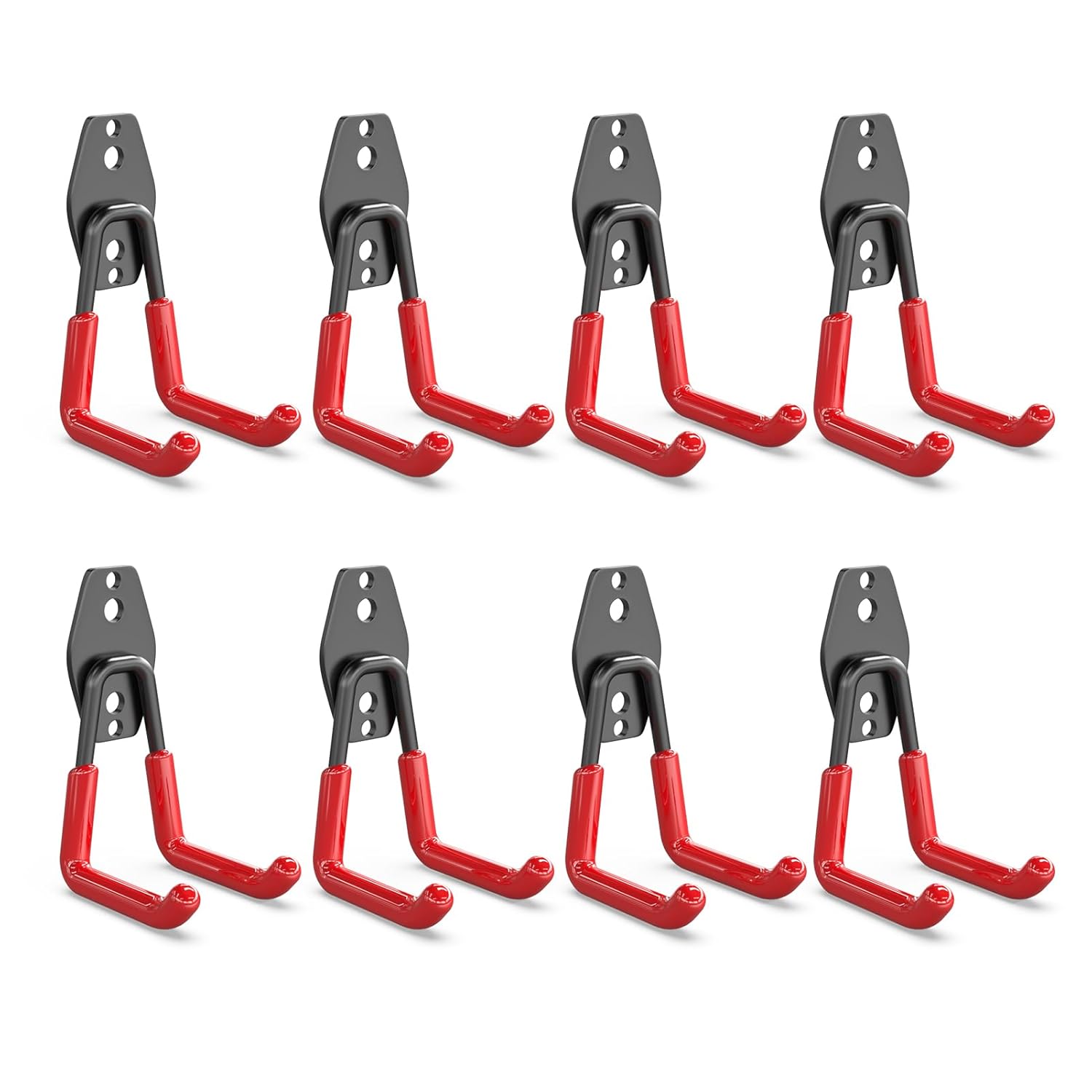 - PERFECT FOR HEAVY OBJECTS βGarage hooks is a set of 8 wall mounted double hooks,8 small U hook . The extended length and anti-slip coating let you organise and hang heavy objects for up to 80lbs.