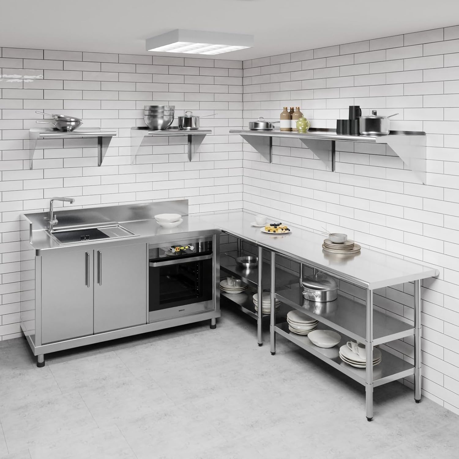 - Its professional, modern and sleek design makes this metal shelf perfect for use in any residential or commercial kitchen, food truck, garage, closet, laundry room, utility and equipment room, lab, appliance shelf for toaster and microwave, etc.