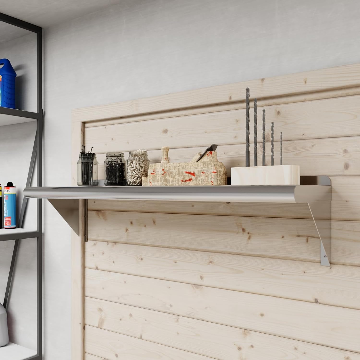 - This corrosion-resistant wall mount shelf can handle anything you throw at it and will last for years to come. Easy to clean and sterilize, metal shelves are superior to wood or glass. Food and liquid wonβt get stuck or ruin the integrity of the surface. Easily wipe away excess with no fuss, mess, or contamination.