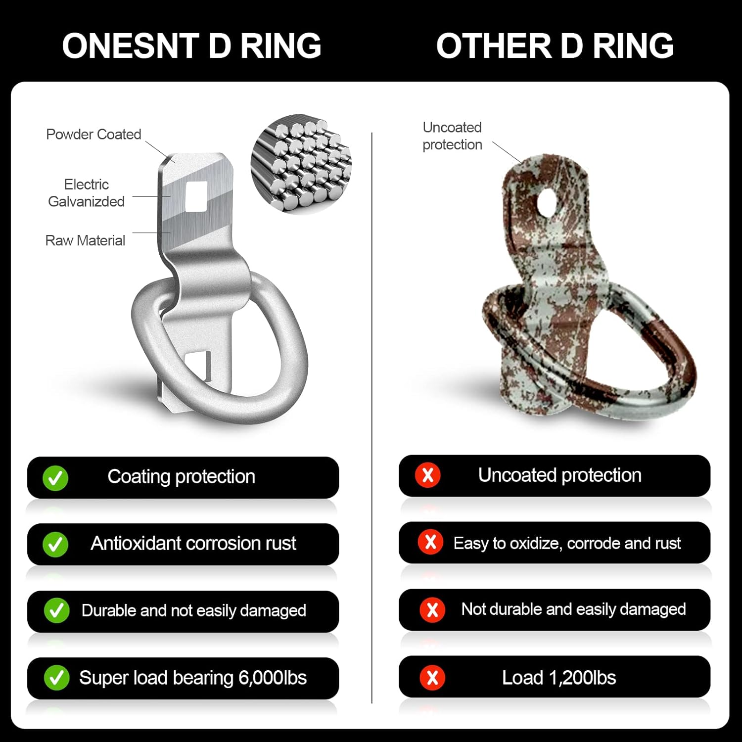 D-Rings, Truck Tie Downs Anchor 3/8" Heavy Duty 6000 Pound Steel Tie-Down Ring for Loads on Trucks, Trailers, Boats, RV Campers, Vans;for Kayaks, Motorcycles, Deliveries, ATVs (Pack of 6)