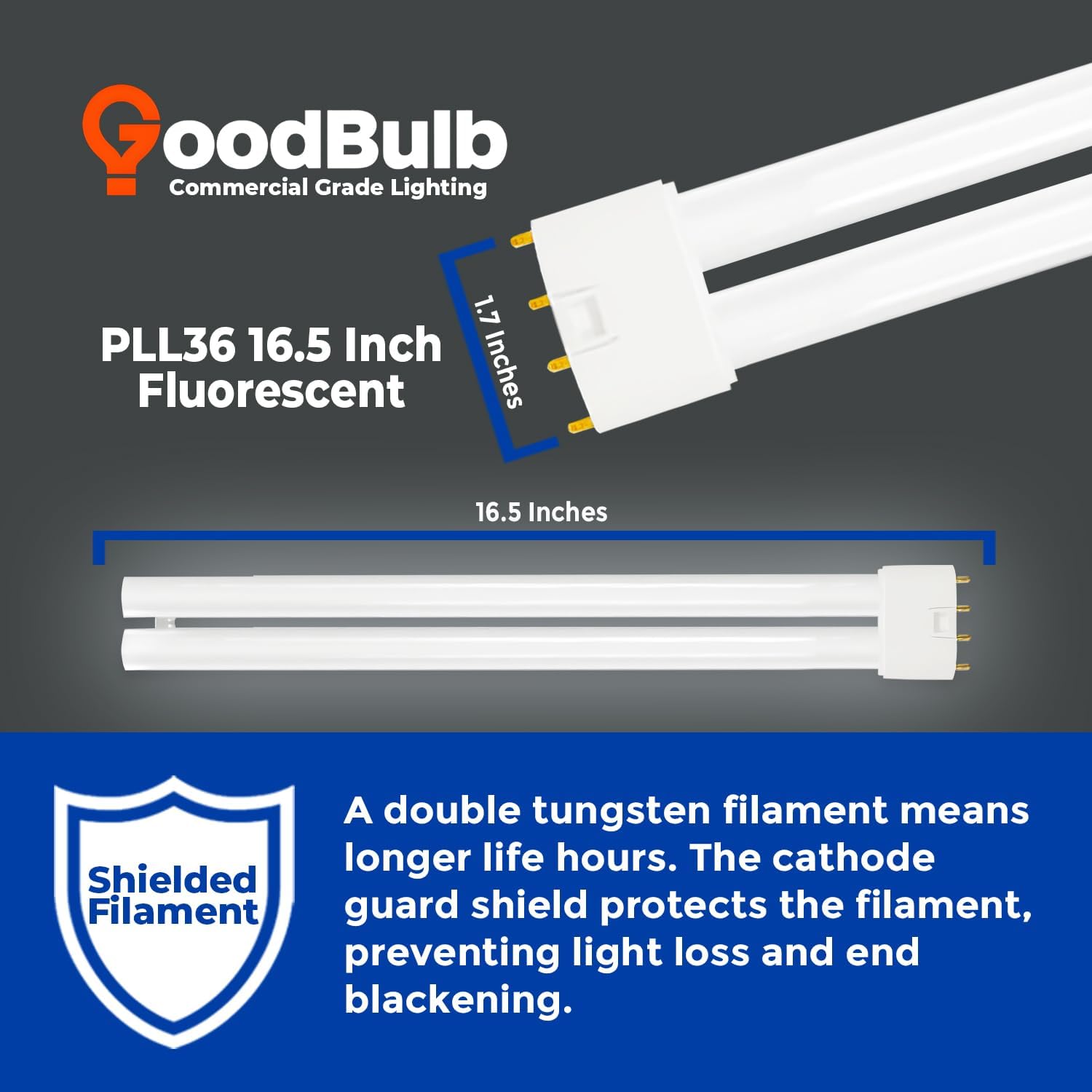 GoodBulb PLL36/850 36W 16.5" Twin Tube Compact Fluorescent Light Bulb 4-pin 2G11 Base 5000K Daylight 2400 Lumen 36000 Hour Long Life Biax Pack of 10