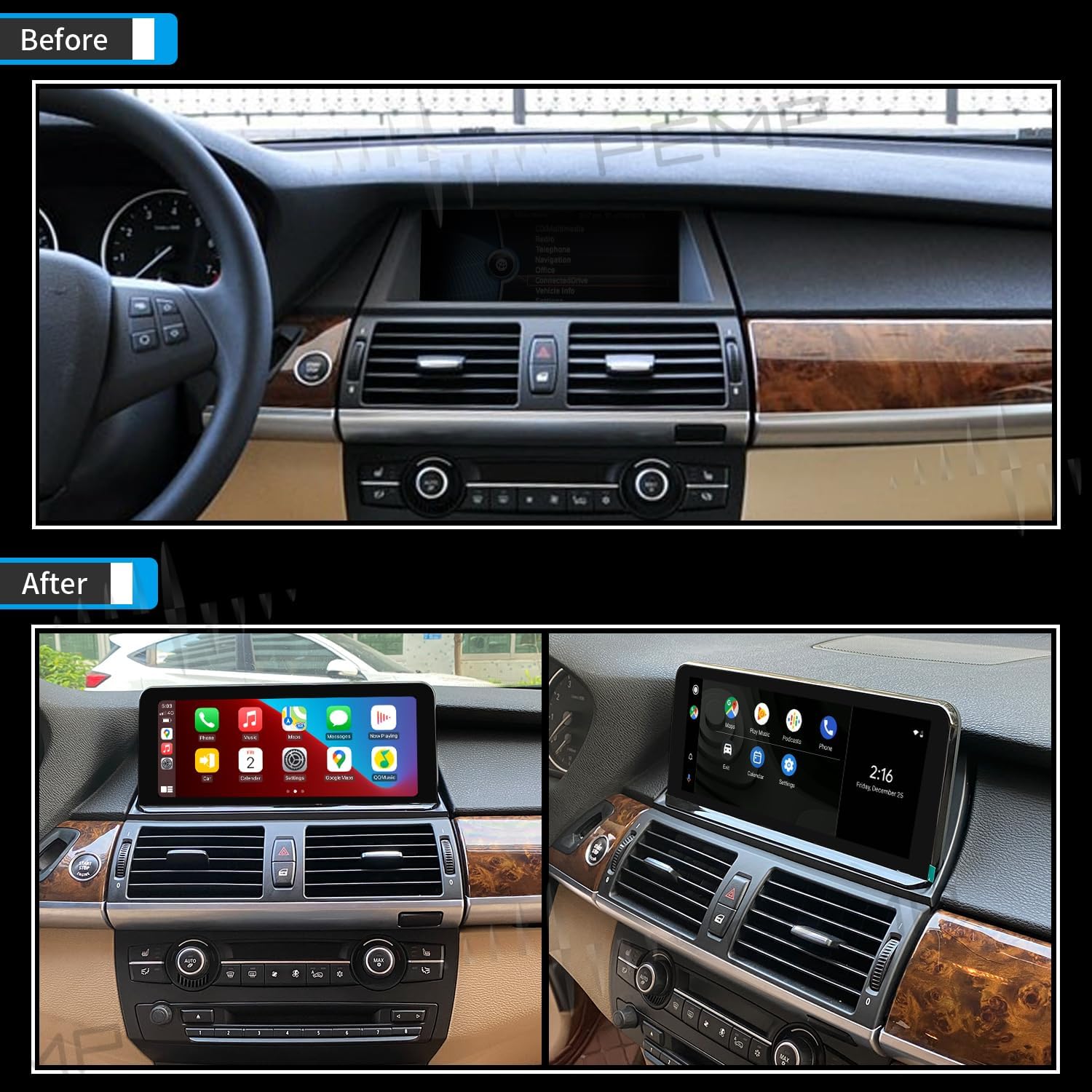 - [CARPLAY & ANDROID AUTO] Support Wired and Wireless CarPlay and Android Auto for BMW E70 E71 CIC, You Can Answer CarPlay or Android Auto Phone Call by Steering Wheel Button.