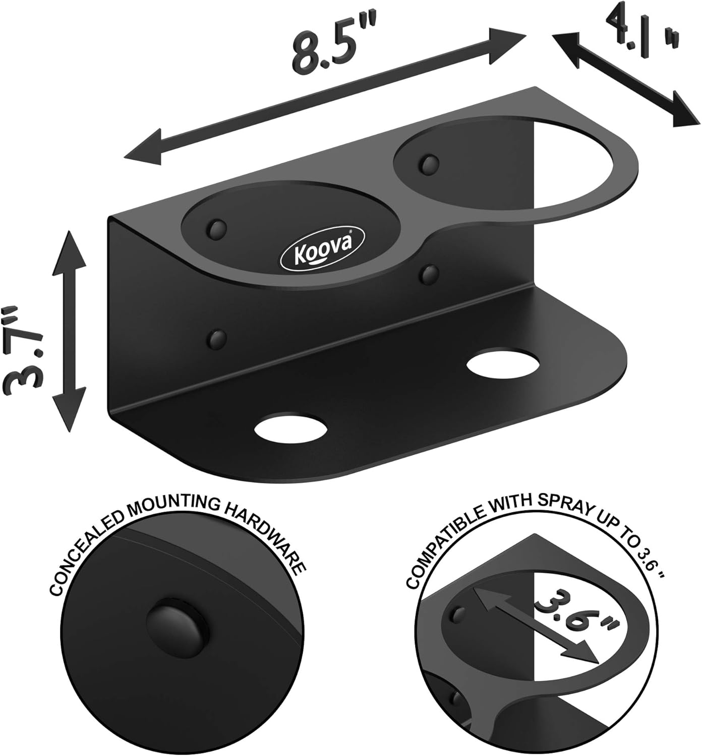 Koova 2 All-Purpose Spray Bottle Holder | Easy Install Wall Mount Hardware Included | Heavy-Duty Powder Coated Steel Storage Rack for Garage And Home | Craft Workspace Paint Bottle Organizer USA Made