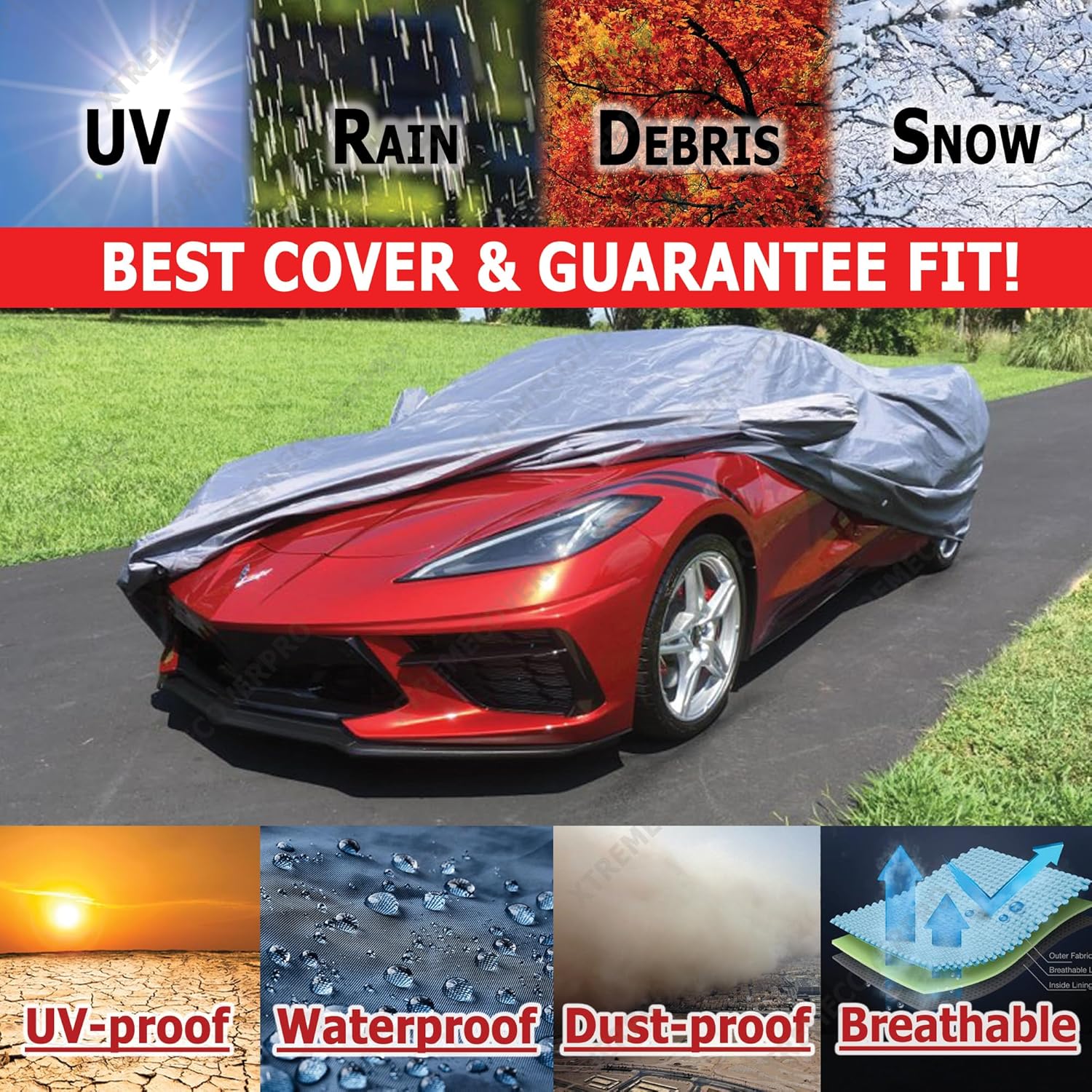 - Coverage : Full exterior coverage for Chevy Corvette C8