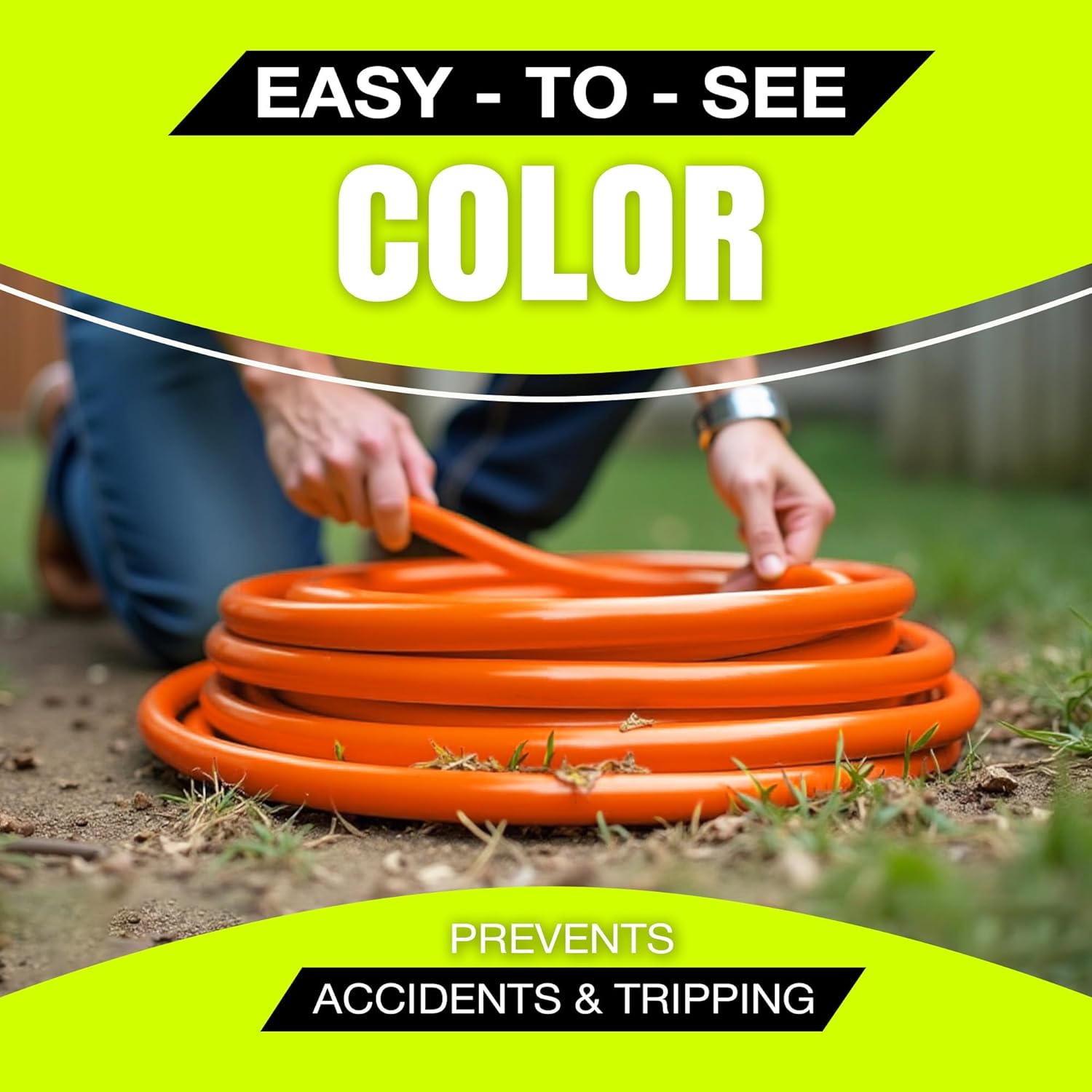 - LIGHTED END FOR VISIBILITY & SAFETY: With a lighted end to indicate power and a brightly colored PVC jacket, this three prong extension cord minimizes tripping hazards and improves safety in busy or poorly lit areas. Stay safe while powering up with an easily noticeable extension cable. The innovative design not only enhances operational safety but also ensures that the indoor / outdoor power cord is easily identifiable among your tools and equipment, preventing accidental disconnections.