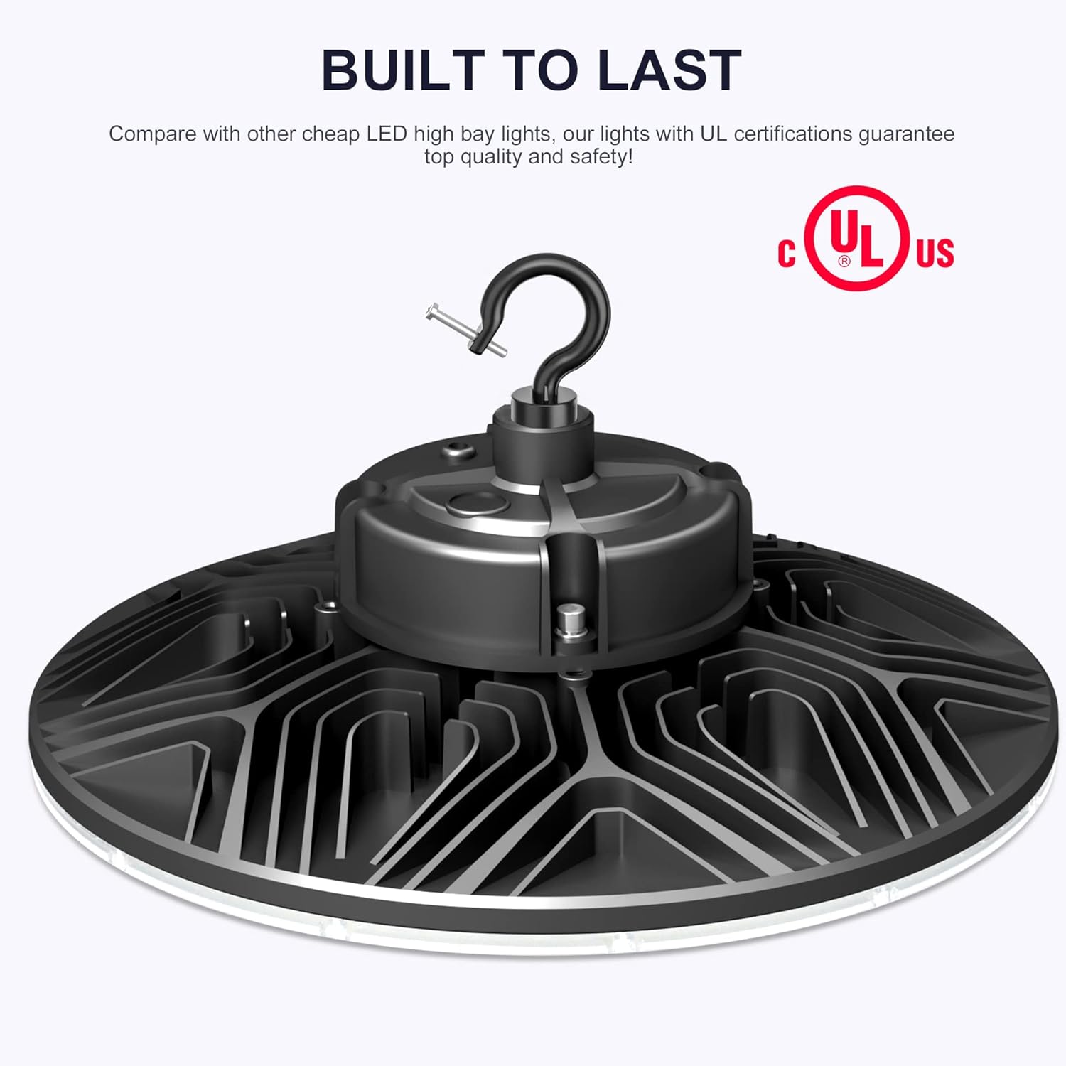 150W UFO-LED-High-Bay-Light, UL & DLC Listed 5000K Daylight 21000LM, 0-10V Dimmable LED High Bay Lights, IP65 Waterproof Commercial Bay Lighting Fixture AC100-277V for Warehouse(1 Pack)
