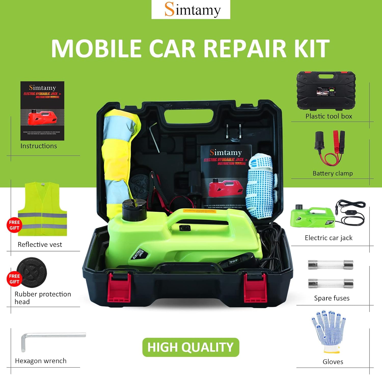 - Safety and Effortless: Car jack is equipped with overload protection for added safety. The safety valve allows for manual control of lifting and lowering. With a simple button switch for one-touch operation and a 3.5-meter power cable, it easily reaches every position on your vehicle.