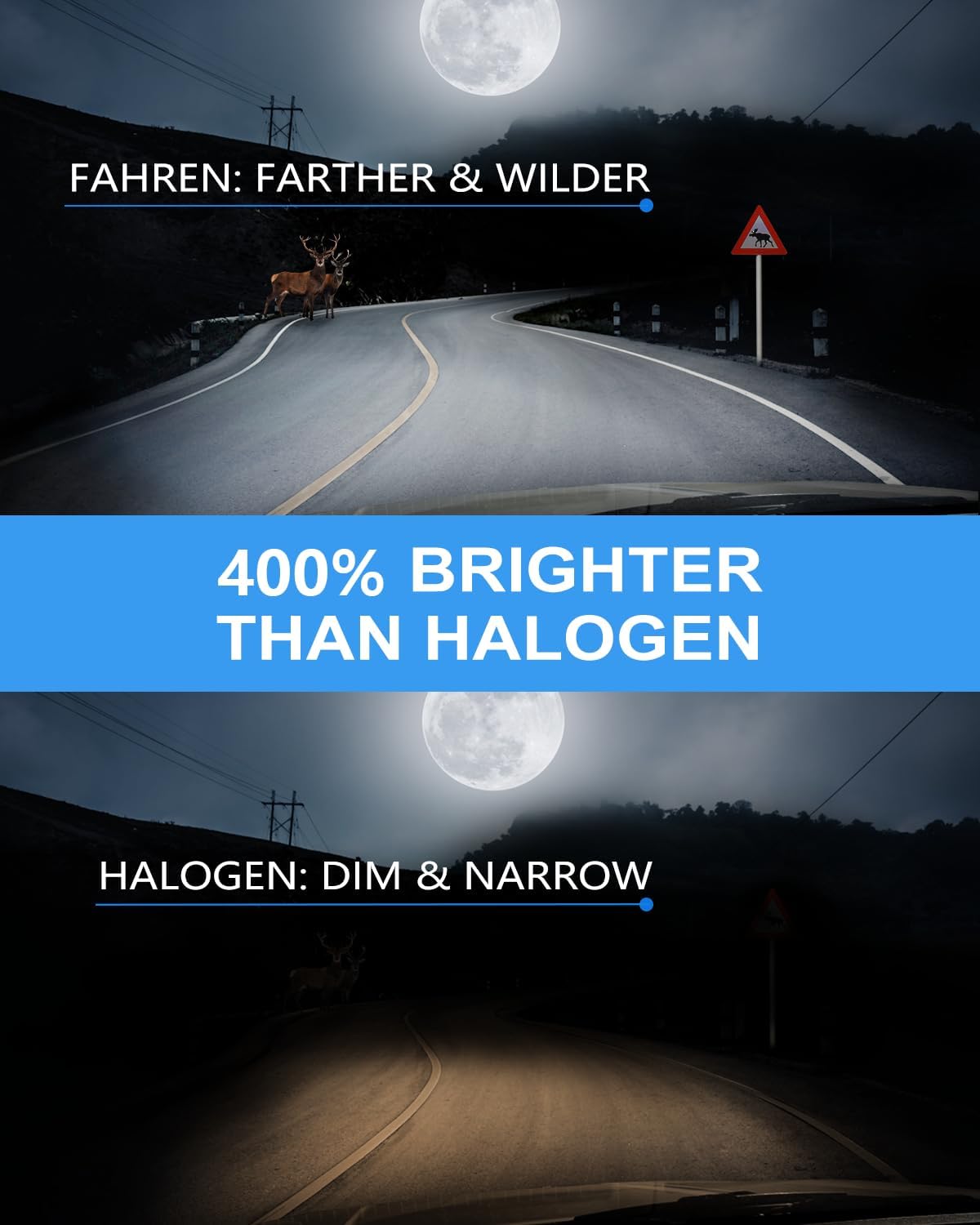 - 【Designed For A better driving experience】 The ultra-thin lamp body of H11 LED fog lamp projects the light farther & lighting range which is 400% brighter than halogen bulbs. With white color light and focused beam design to offer you a clearer and more comfortable vision without blinding other drivers.
