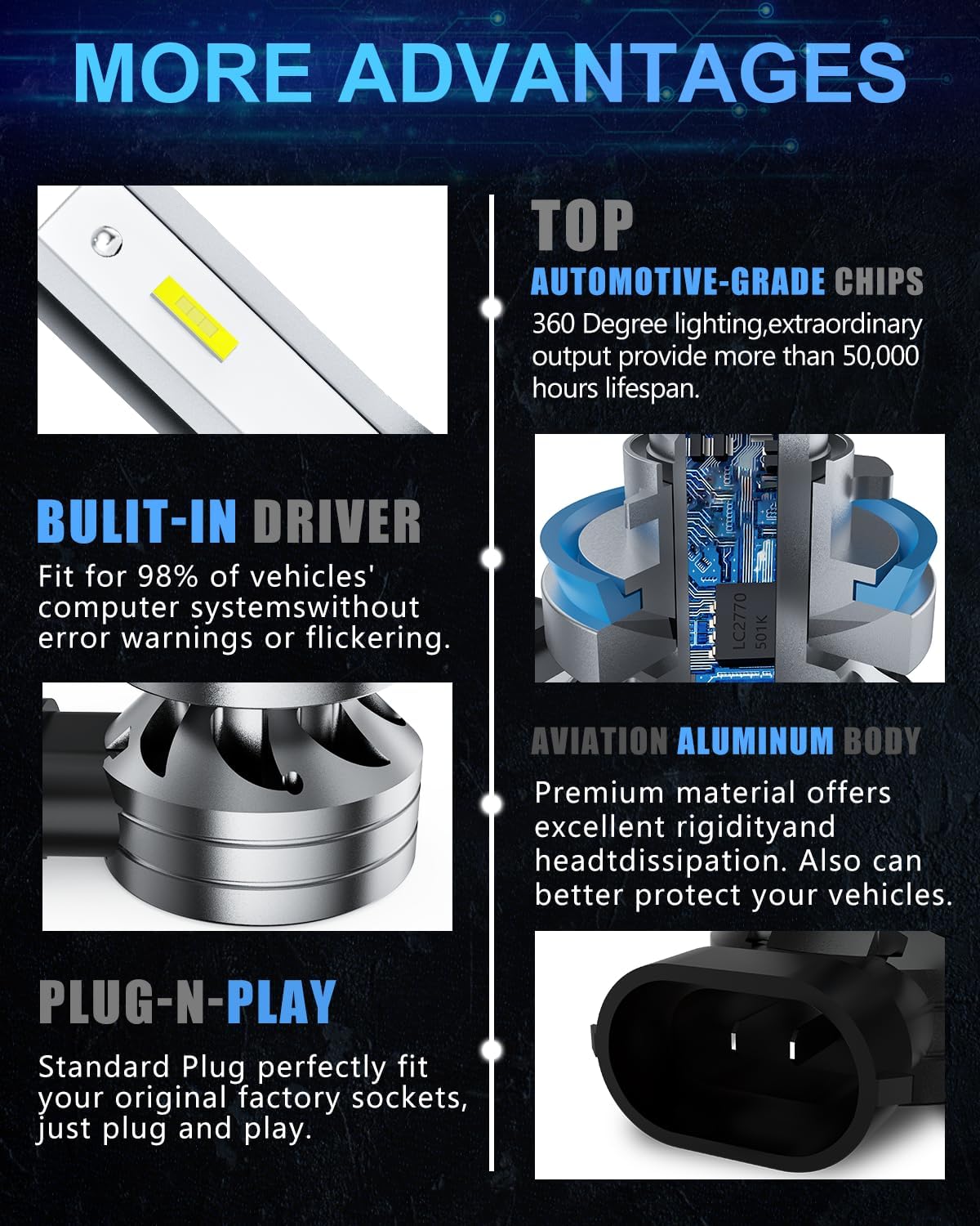 - 【Refuse to Frequent Replacement】 The whole aviation aluminum body and hollow-carved heat sink design of H11 LED bring superior cooling capacity, which ensures a longer lifespan of up to 50,000 hours. Greatly reduce the frequency of your bulb replacement, save your buck and time.
