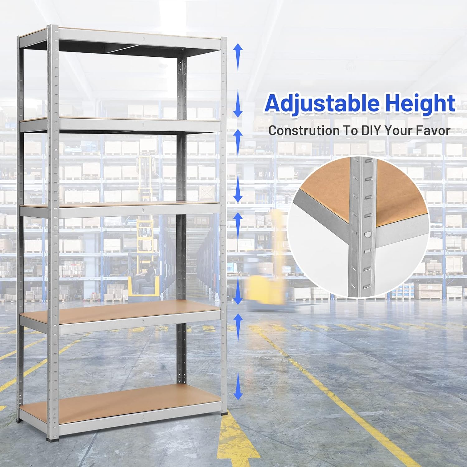ERGOMASTER 5 Tier Utility Shelves Rack Garage Heavy Duty Steel Metal Shelving Unit with Adjustable Design, Bolt-Free Assembly & 385 LBS Wight Capacity Per Tier (1, Silver)