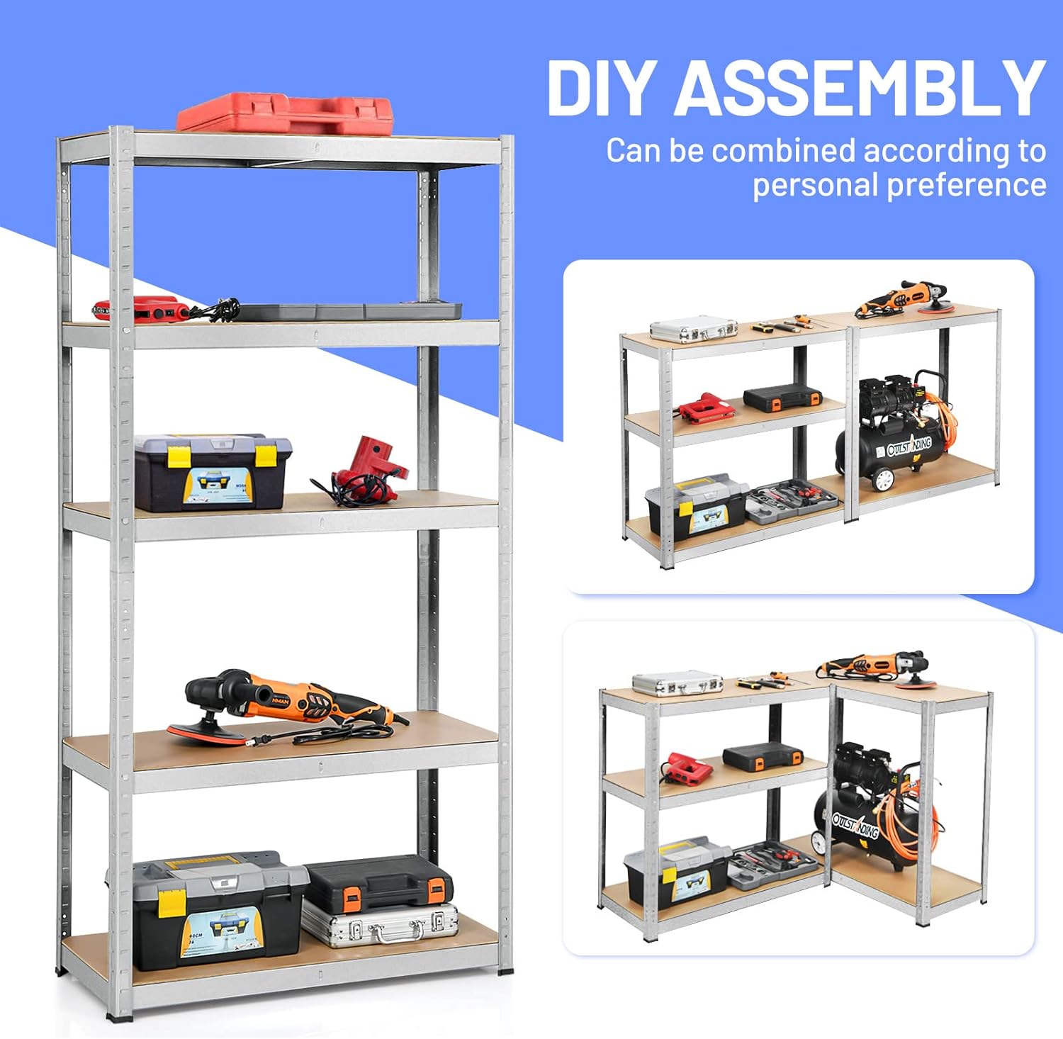 - NO-TOOL, NO-BOLT ASSEMBLY – Effortlessly snap shelves into place with the innovative bolt-free design. Adjust heights in seconds and disassemble just as easily for storage or relocation.