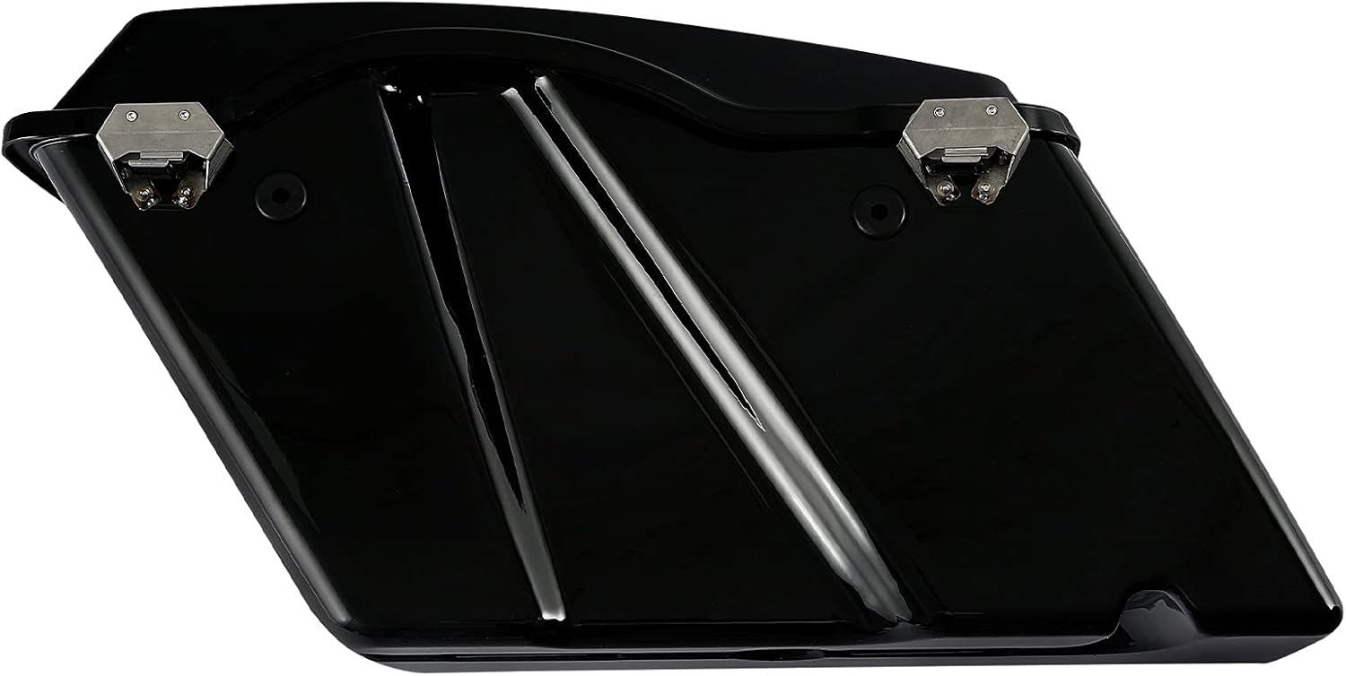 - Material: Made of durable ABS plastic, Vivid Black finish, strong and practical; Left & right stock style lids, fit the saddlebags perfectly and waterproof