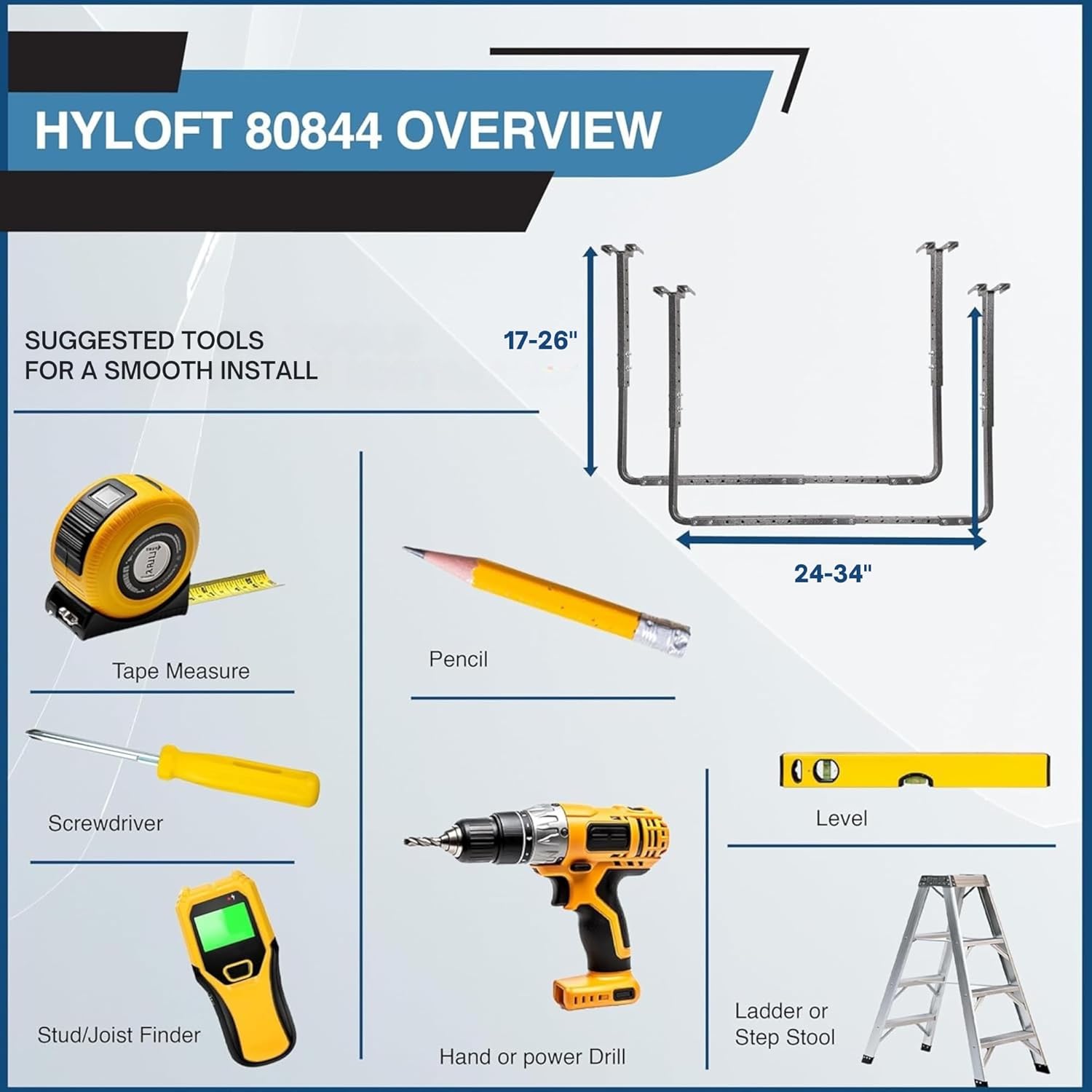 - Versatile Ceiling Storage Solution: Adjustable ceiling storage unit fits most joist configurations, with a height range from 17 to 26 inches, and width from 24 to 34 inches, making it adaptable to various garage setups
