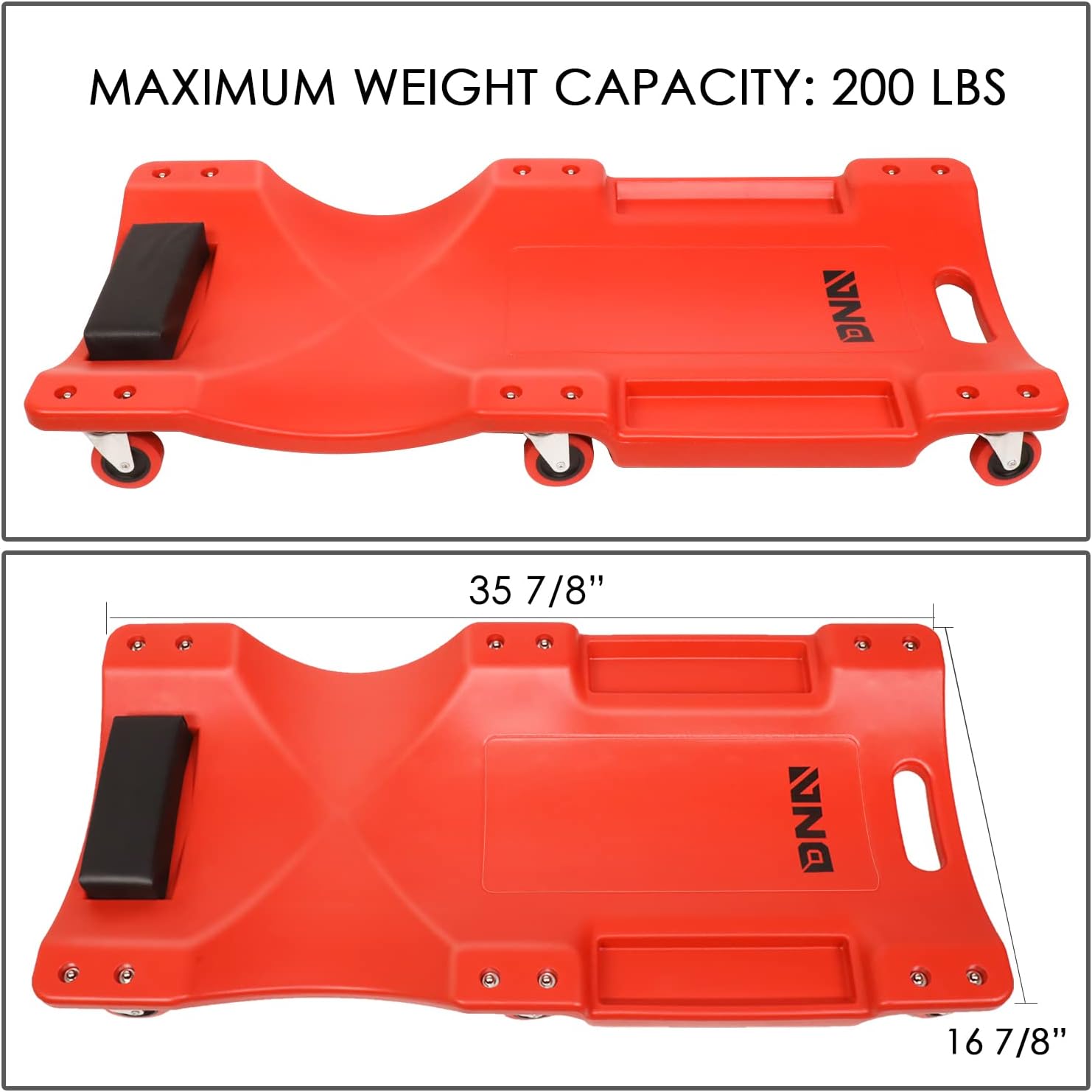 DNA MOTORING TOOLS-00201 36" L X 17" W x 4.25" H Vehicle Repair Low Profile Automotive Creeper w/Padded Headrest, Red