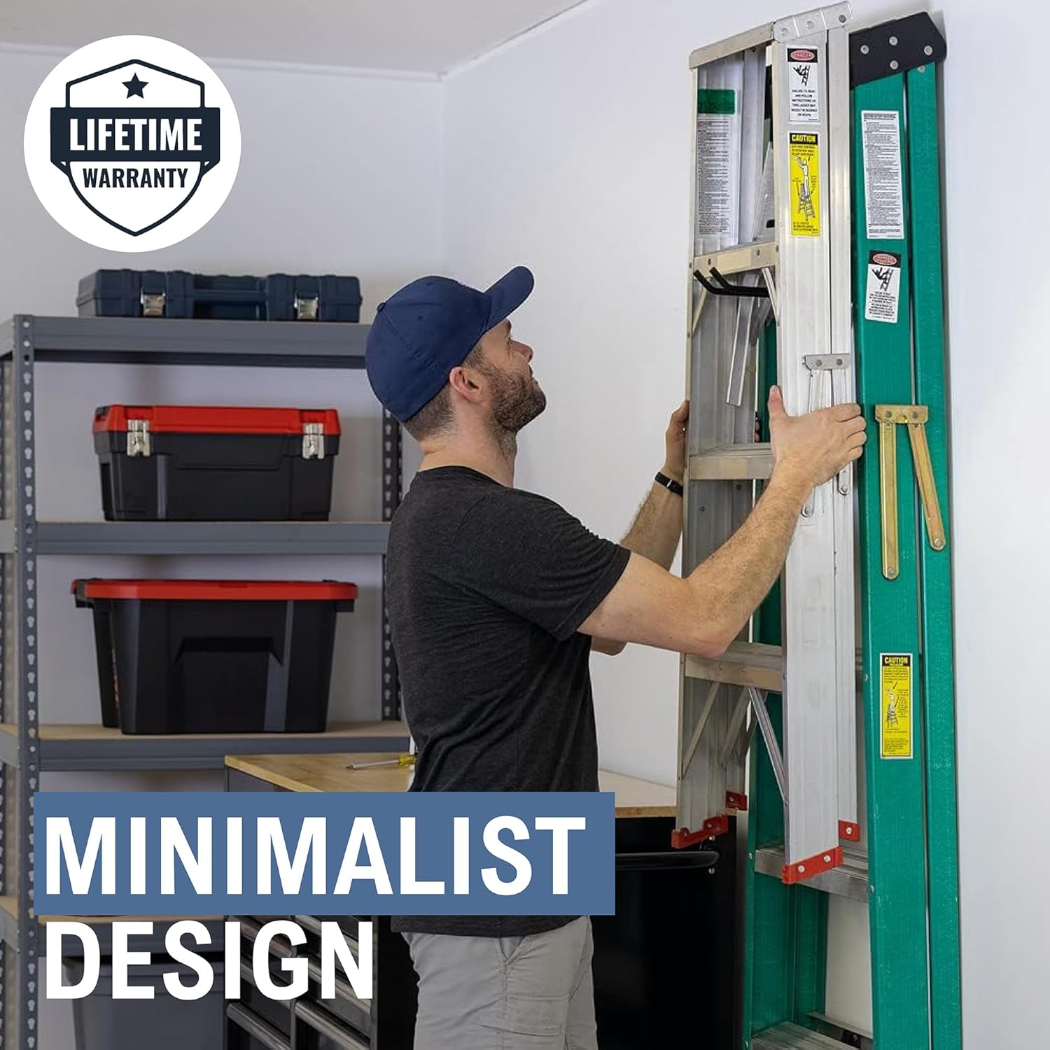 - Space-Saving Ladder Hanger – Clear your garage floor of tripping hazards. This ladder storage hook mounts directly to your garage wall, turning wasted wall space into a clean, organized zone.