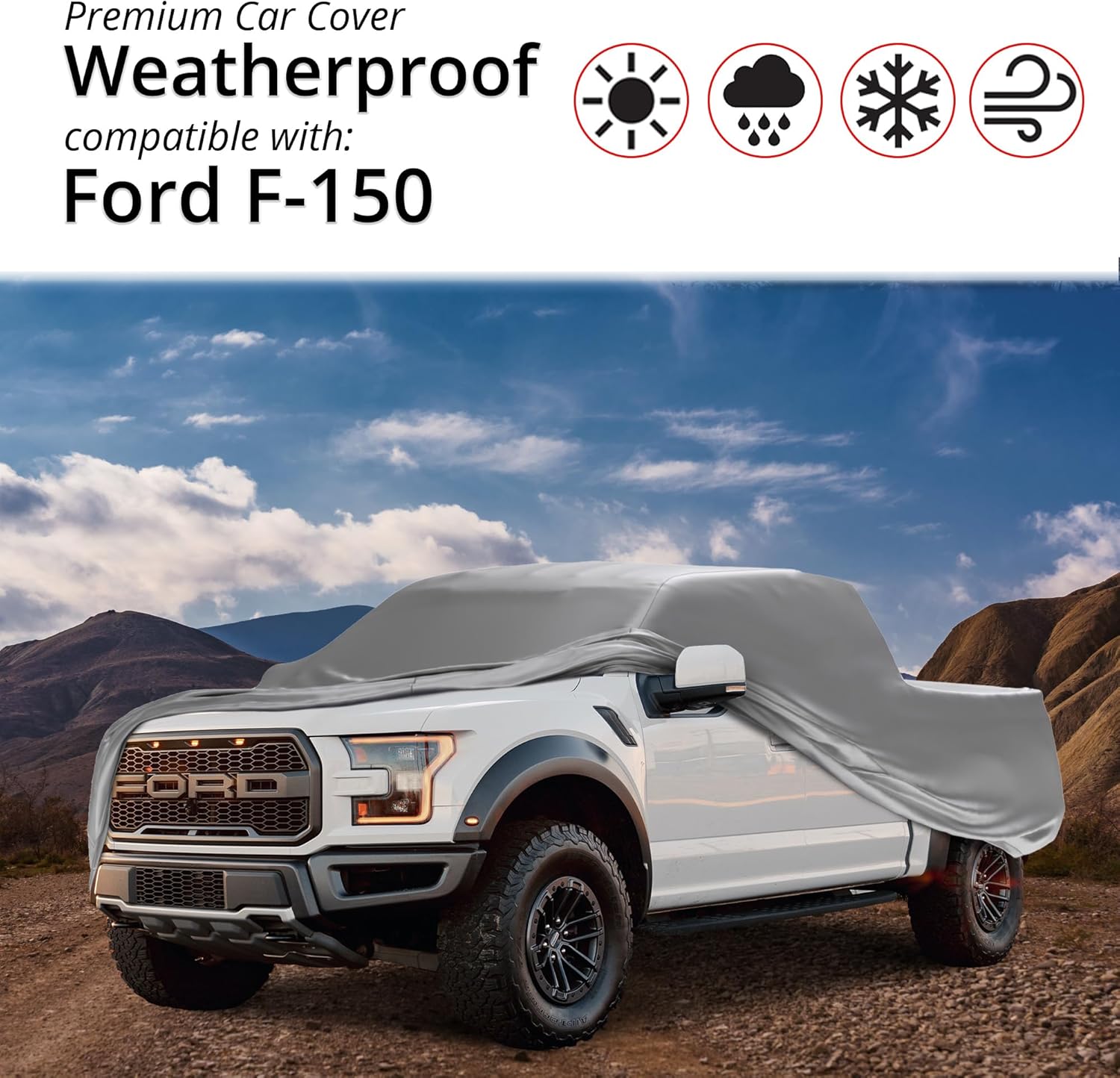 Car Covers Weatherproof Max Truck Cover & Warranty Compatible with Ford 2022-2024 F-150 SuperCab, 5.5'– Outdoor Cover, Prevents Theft with Cable Lock