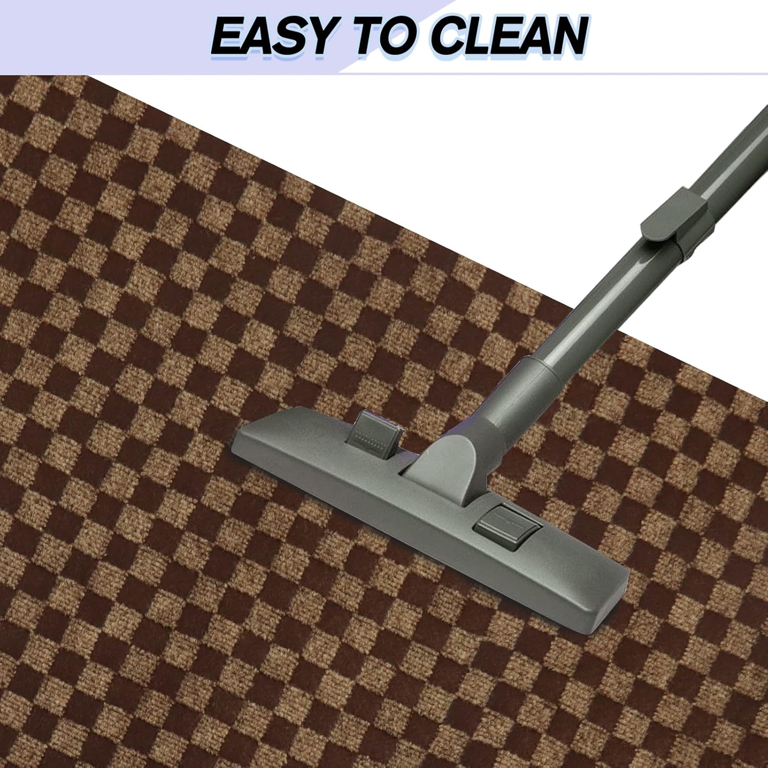 Custom Size Backed Non-Slip Area Rugs Runner, Easy Clean, Waterproof Runner Rugs for Hallway Entryway, Kitchen, Laundry, 3FT x 17FT, Brown Checkered