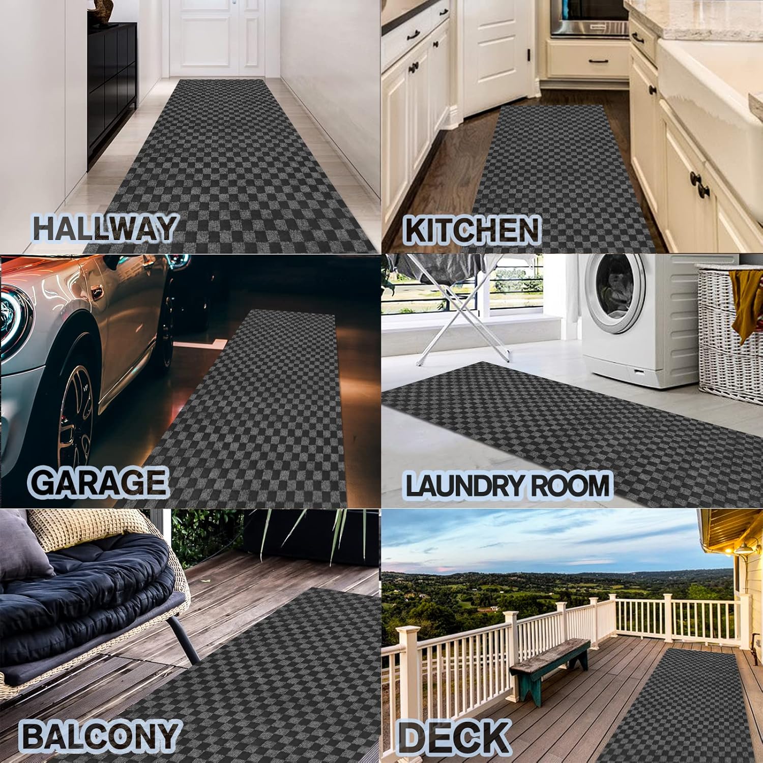Custom Size Backed Non-Slip Area Rugs Runner, Easy Clean, Waterproof Runner Rugs for Hallway Entryway, Kitchen, Laundry, 3FT x 78FT, Gray Checkered