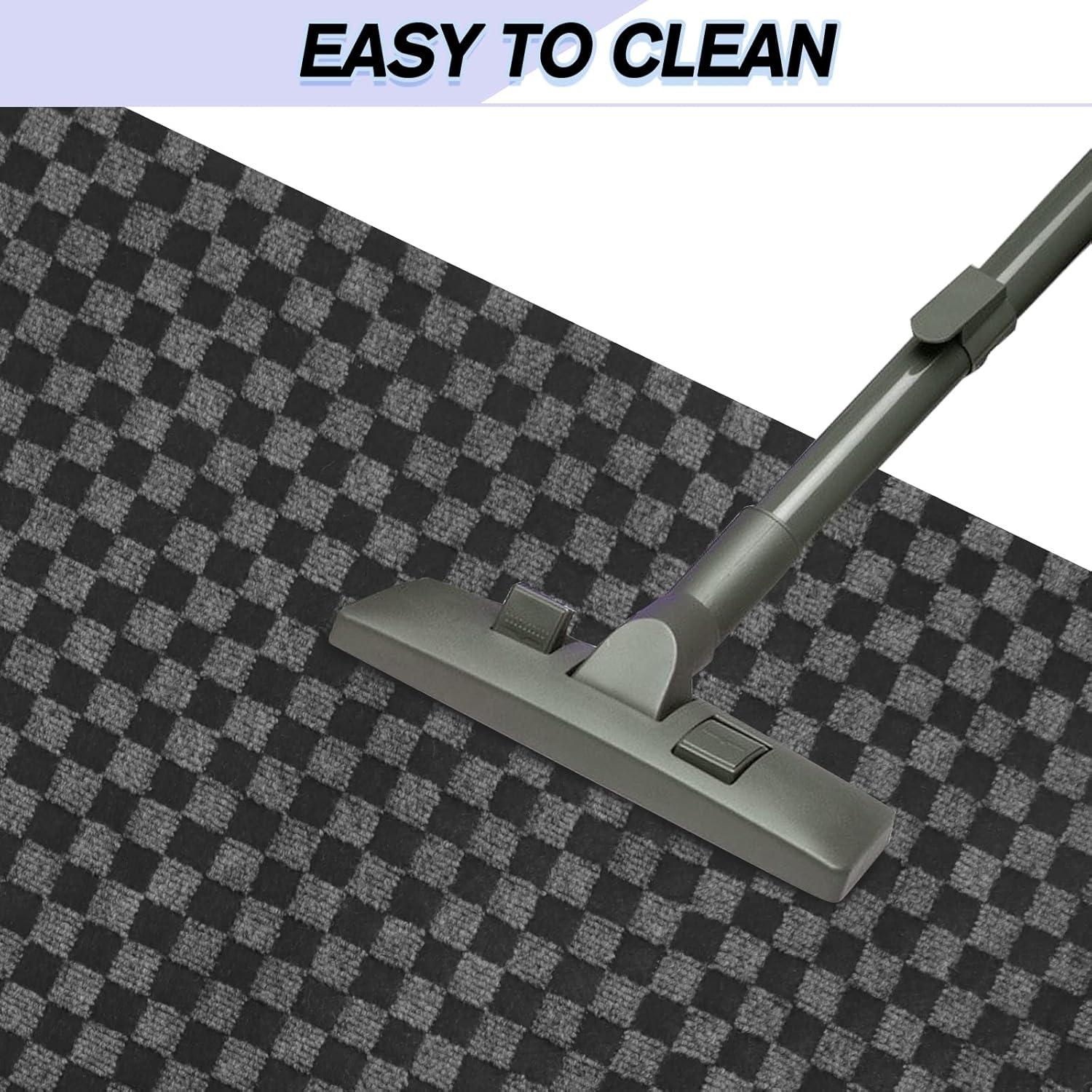 Custom Size Backed Non-Slip Area Rugs Runner, Easy Clean, Waterproof Runner Rugs for Hallway Entryway, Kitchen, Laundry, 3FT x 11FT, Gray Checkered