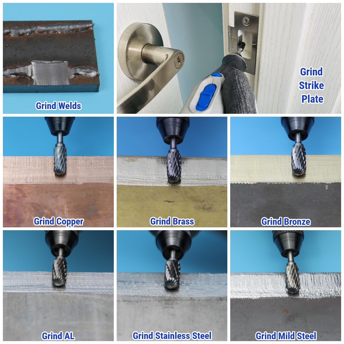 - Perfect for tight spaces than grinding wheel and grinding discs, great for detail work. For lots of materials removal please use our larger shank burrs bits and 500W+ rotary tool. 6 years returnless replacement.