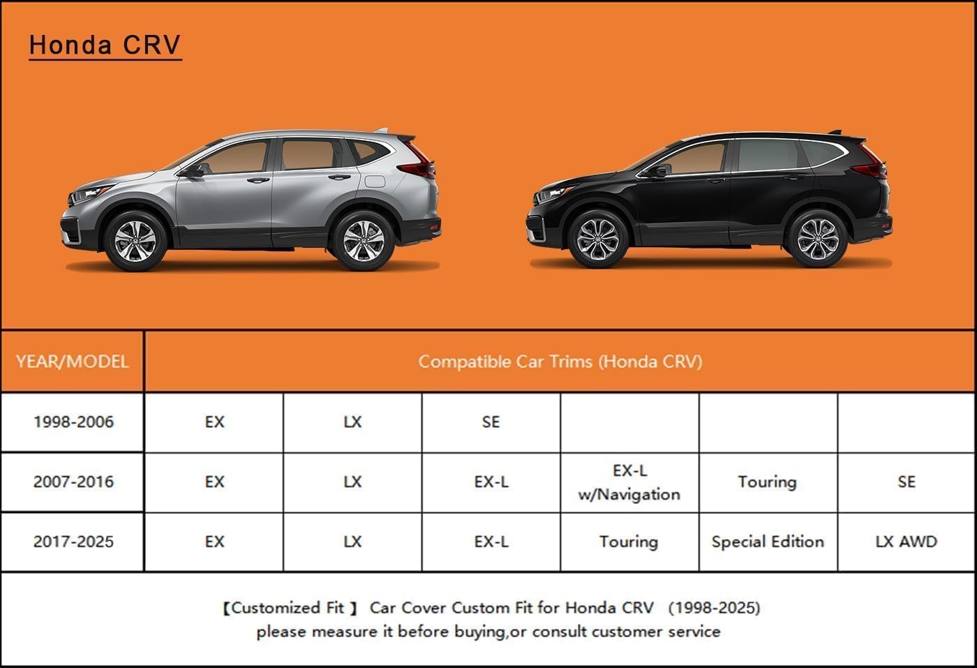 - ăSuitable foră- Custom fit for Honda CRV CR-V (1995-2025). Come with a large enough portable bag to store your cover when you do not use.