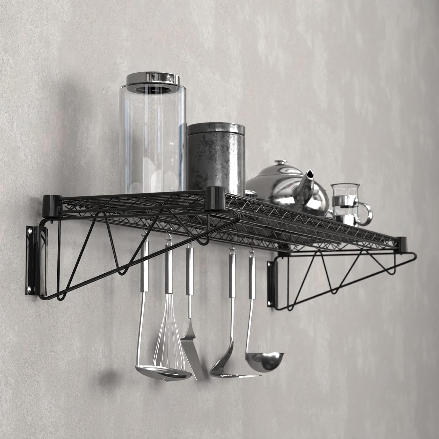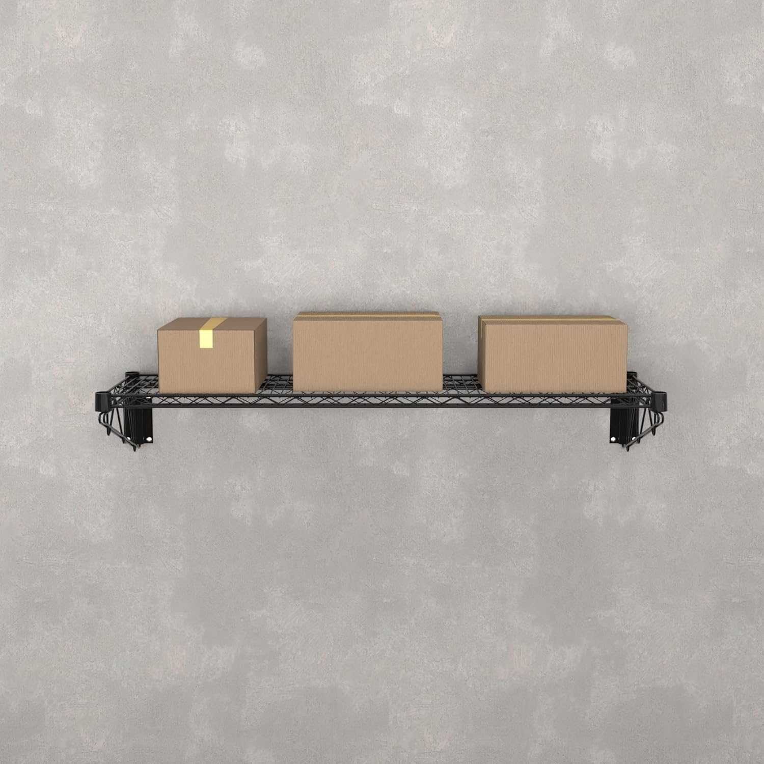 14" x 48" Black Epoxy Wire Wall Mount Shelf
