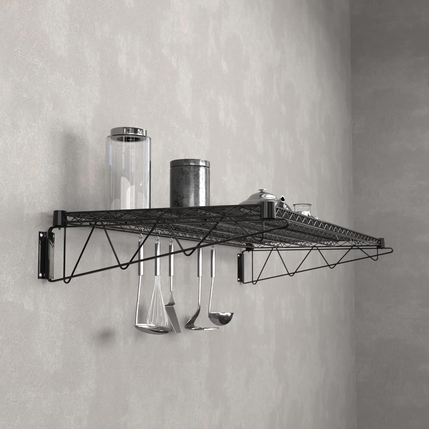 24" x 60" Black Epoxy Wire Wall Mount Shelf