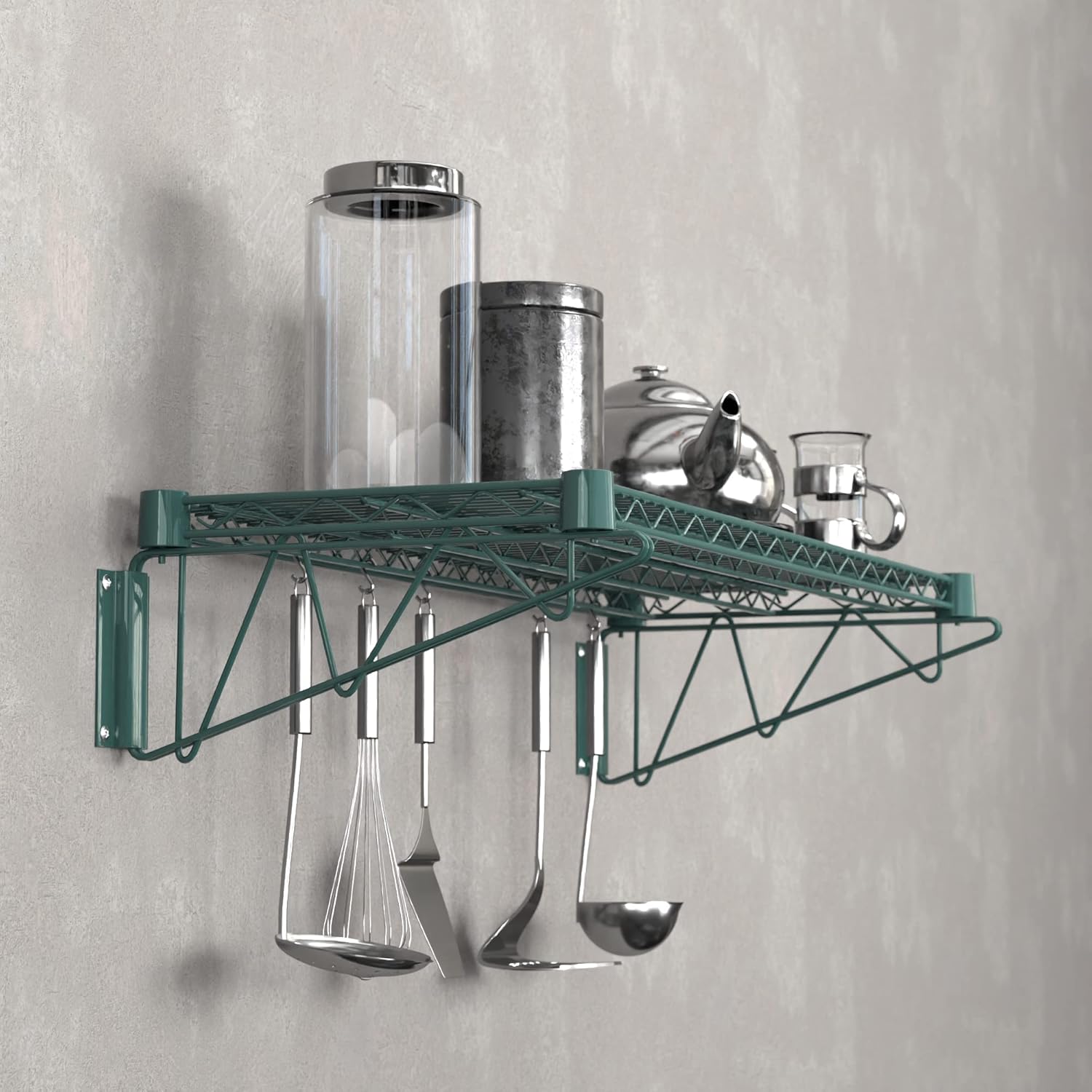 14" x 36" Green Epoxy Wire Wall Mount Shelf