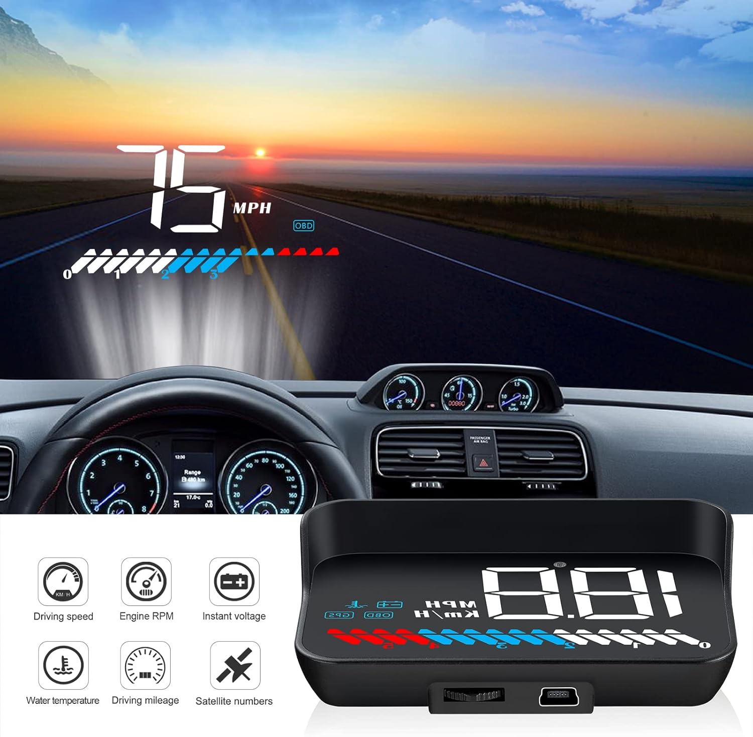 Heads up Display for Cars Car HUD M7, Digital Speedometer for Car OBD/GPS Smart Gauge, Driving Speed, Engine RPM, Voltage, Water Temperature, Etc.., Speedometer for Car Works Great for All Cars