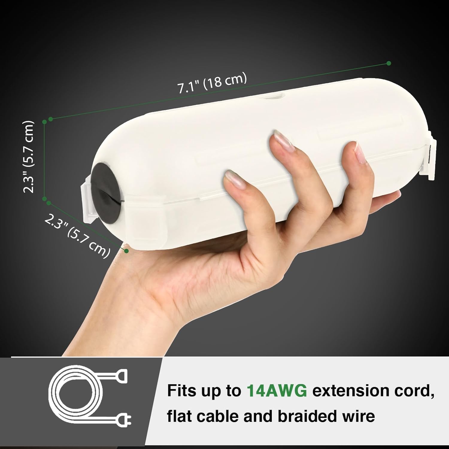 - With the 4 corner clips, snap-lock lid, and rubber gaskets, this outdoor extension cord cover box is IP44 waterproof. Perfect to seal 14/16/18 gauge cord, braided cable and flat wire.
