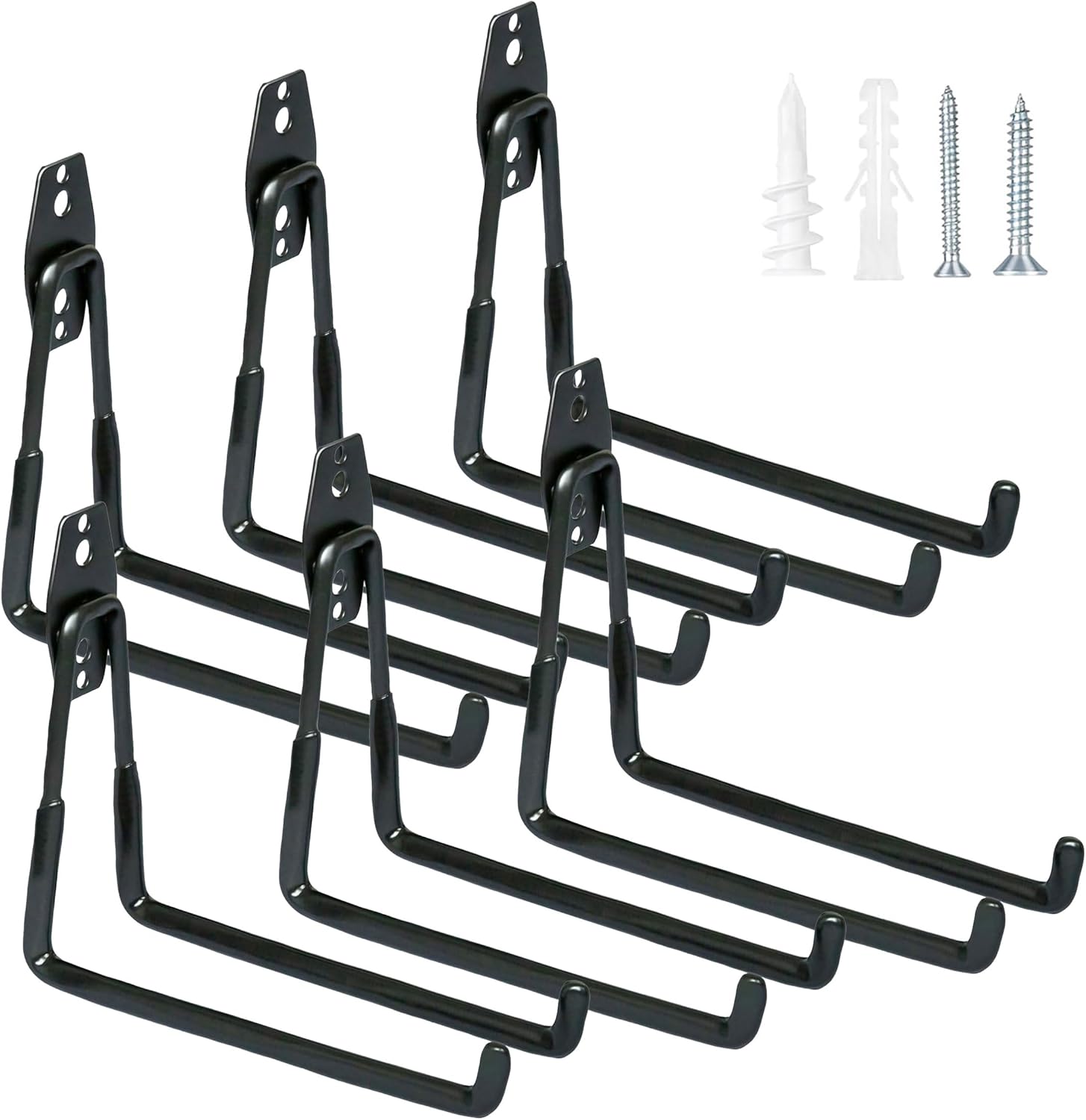 WMK 7.3'' Heavy Duty Garage Hooks, 6 Pack Wall Mount Garage Storage Hooks for Hanging Bike, Ladder, Tools - 100LB Load Capacity, Triple-Welded, PVC Coated (Black)
