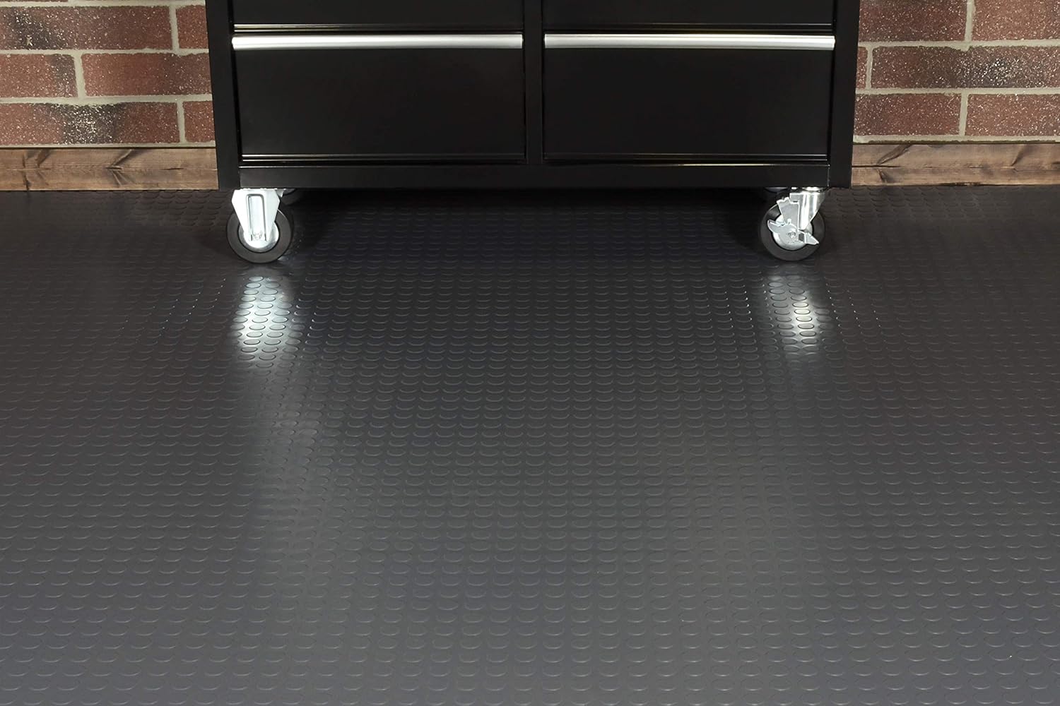 G-Floor Seamless Sheet Vinyl Shed Flooring Cover with Bonded Fibrous Backing - Coin Pattern (8' x 16', Slate Grey)